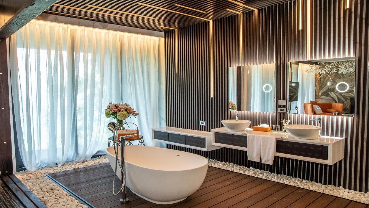 All the accommodation is spaciously designed with lots of amenities, sea views, and terraces so that all you’ll need is right there in your room. Communal spaces are cosier, giving this hideaway a tranquil character. The villas are all individually decorated and are an even more secluded option with their own kitchens and mini Japanese gardens, perfect for honeymooners or couples.