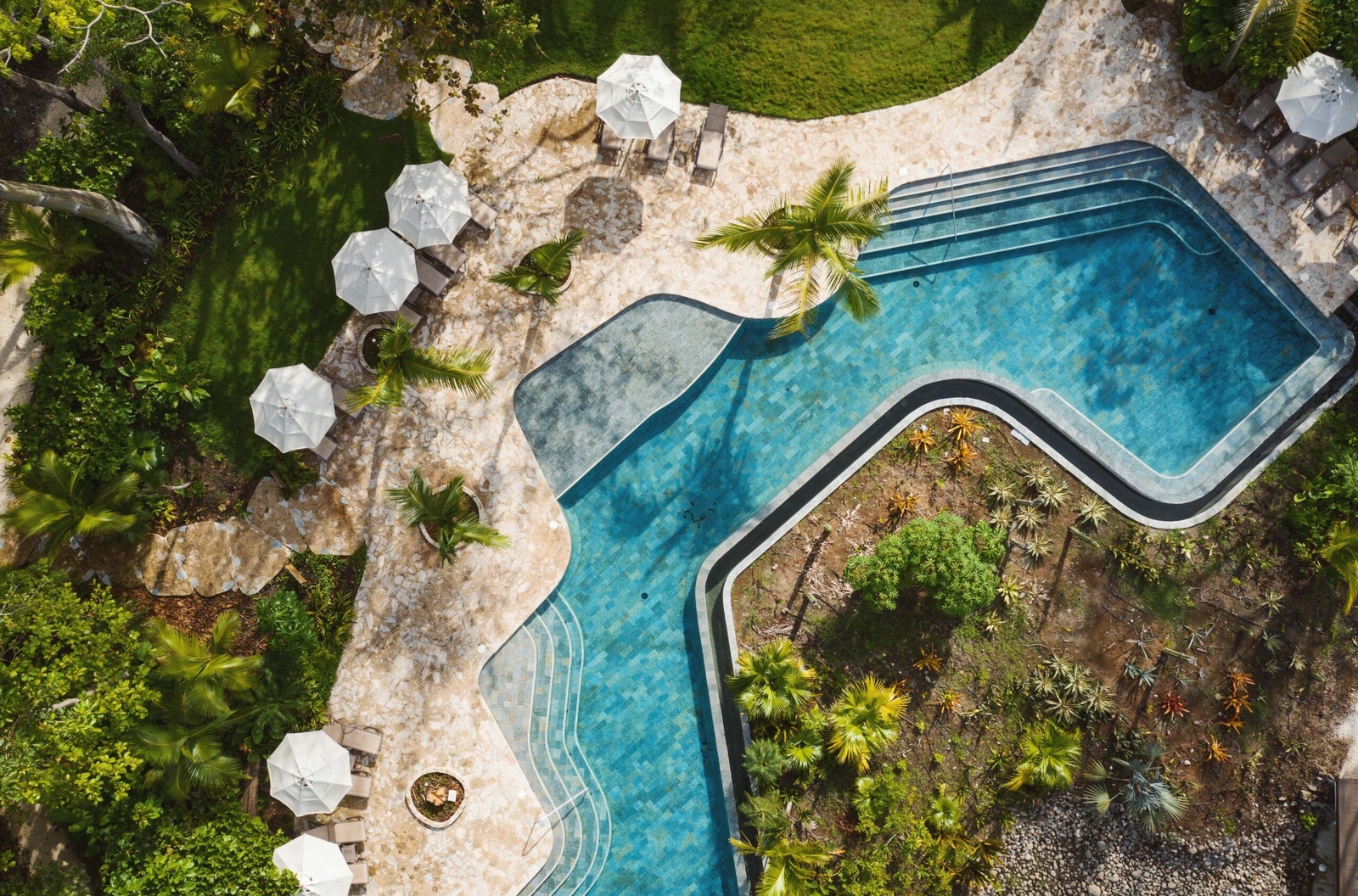The ‘Manti’ bungalows, inspired by the word for ‘tree,’ provide a tranquil retreat enveloped by a private garden and forest. Listen to the sounds of the forest as you lounge in a hammock or cool off in your private plunge pool. The indoor/outdoor shower lets you bathe in nature.
