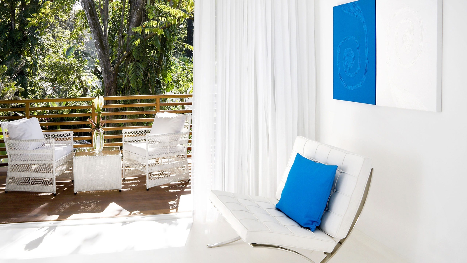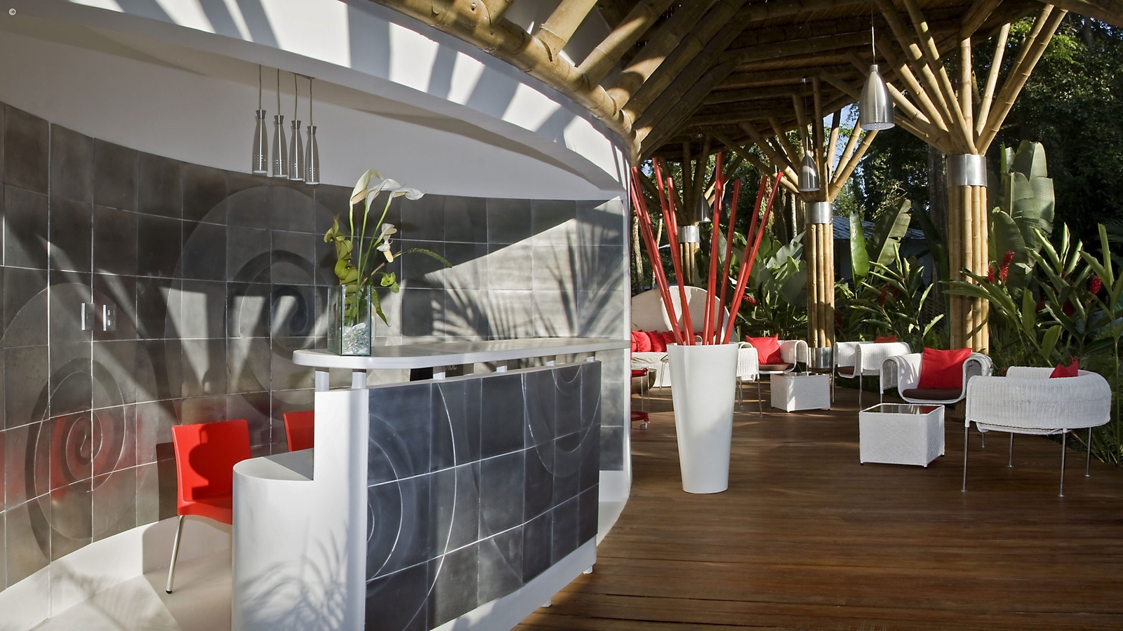 The 23 all-white, minimalist and highly smart rooms are touched with the occasional bright pillow and feature artwork, flowers, as well as plasma televisions and iPod docks. Wi-Fi runs throughout the hotel. With private patios looking onto the encroaching jungle flora, the clashing contrast of the hotel’s modernity against the wild enveloping nature is triumphant and somewhat reminiscent of the sophisticated Miami hotel style.