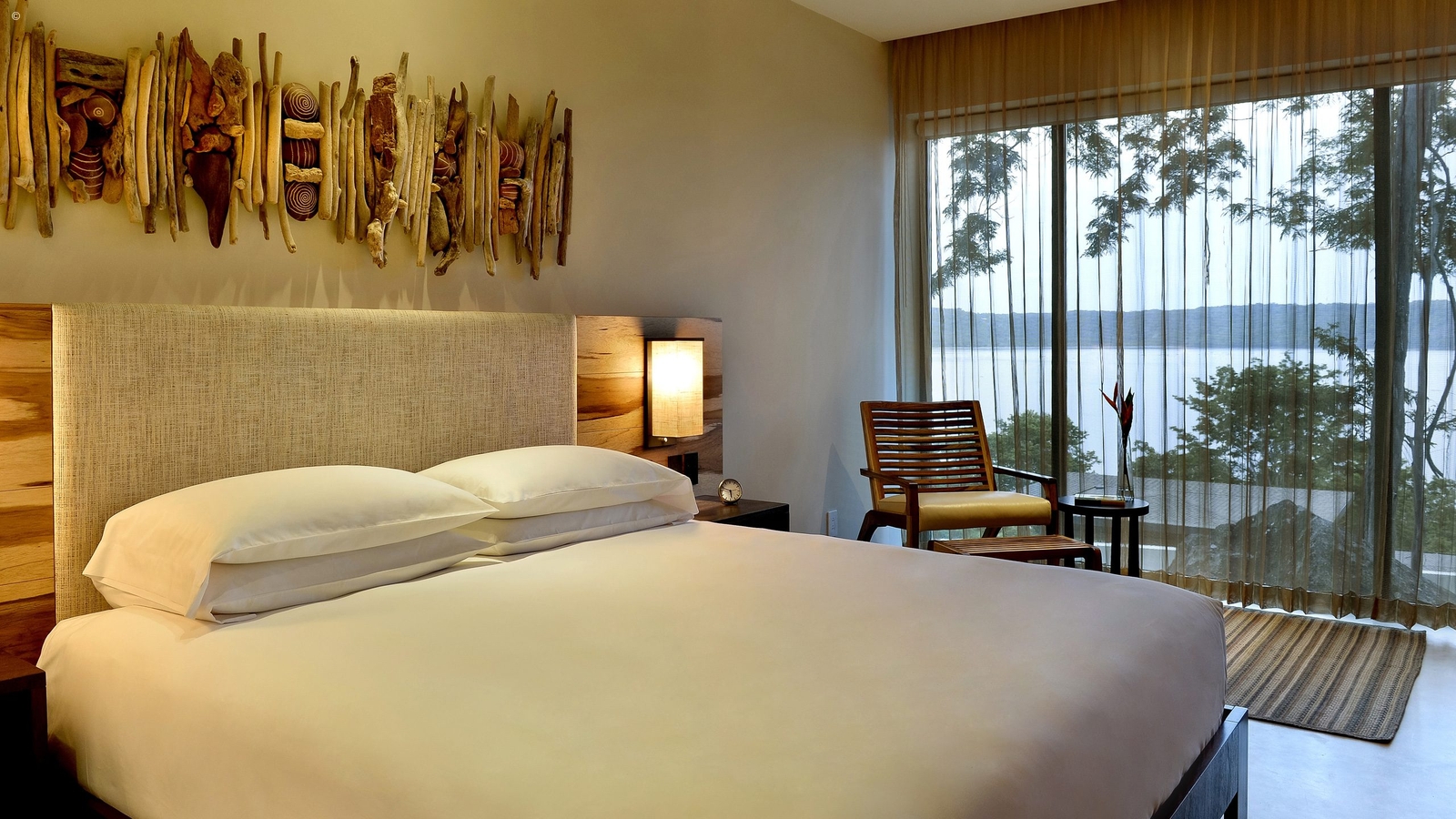 153 modern rooms and suites with private plunge pools, sit cascading down a verdant hillside between two secluded beaches. Settle into your room and enjoy the views of the ocean and forest. Woven textiles, solid wood furnishings and carved artefacts give the rooms a charming Costa Rican aesthetic.