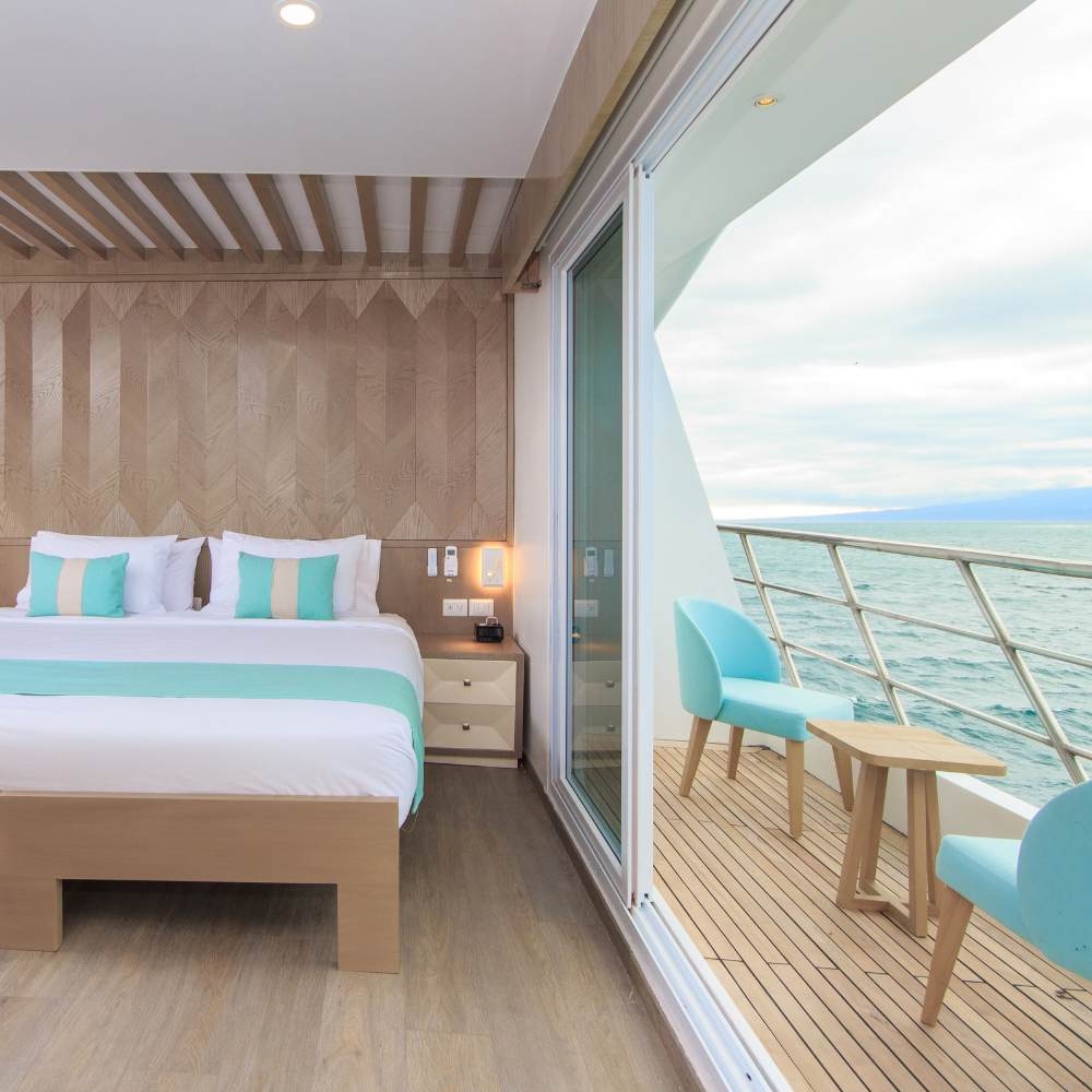 This all-suites ship is an idyllic vessel on which to explore the waters surrounding the astonishing Galápagos Islands. After spending days on land, meeting blue-footed boobies and sea lions and giant tortoises, you’ll be able to return to relax in your spacious bedroom complete with balcony and writing desk.