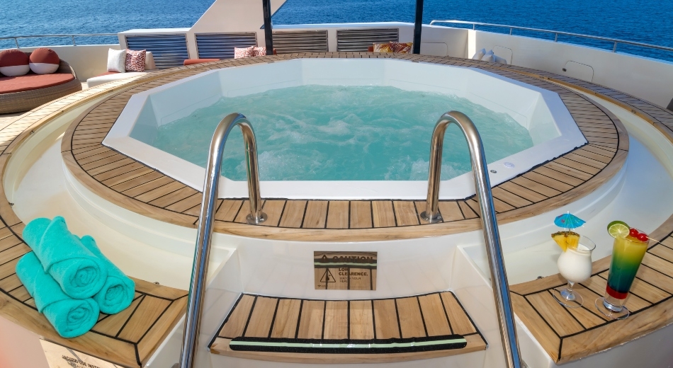 Enjoy the passing scenery of the Galapagos Islands from your balcony