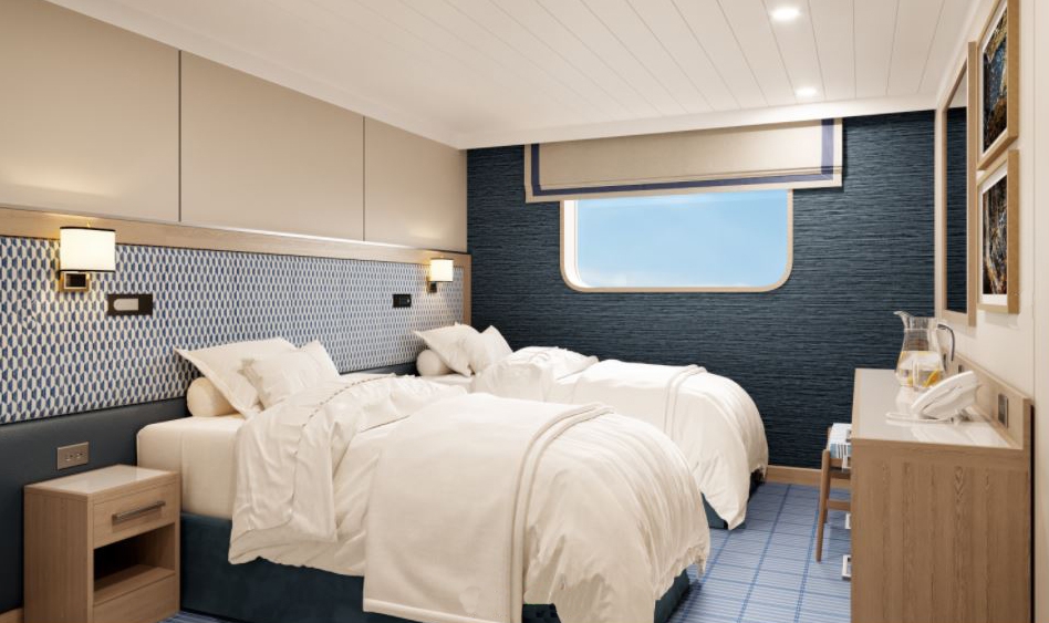 The new boat is just over 70m long and features 50 Swedish-designed cabins and suites, with room for up to 90 guests. All enjoy sea views out of large windows and en-suite bathrooms. 36 cabins can be interconnected, ideal for families and small groups.