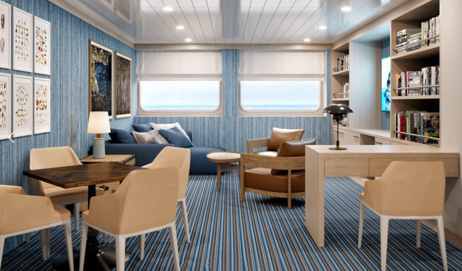 Communal areas include the Sky Deck, overlooking the bow, where guests can enjoy the sunshine or exercise in the fitness room. The aptly named Panorama Deck has an elegant bar, lounge and an al fresco dining area to the stern. On the same deck, guests are also welcome to visit the bridge, featuring state-of-the-art electronic navigation equipment, to meet the crew and captain. Below this is the library, hot tubs, the Discovery Room and the Beagle Dining Room.