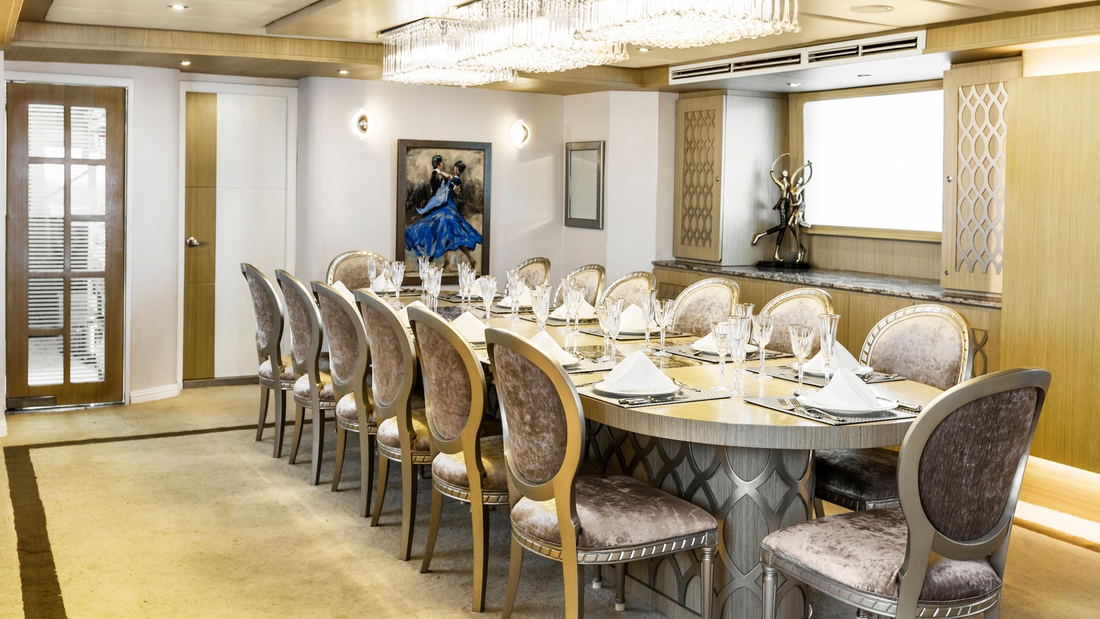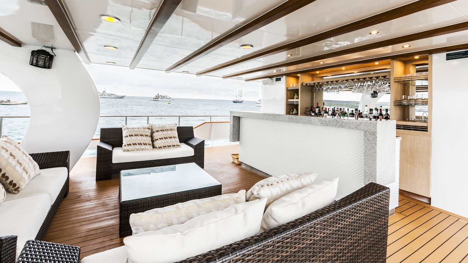 Exuding elegance, rooms are dressed in soft colours and furnishings for complete style. With four guest staterooms, two VIP staterooms and one lavish Master Suite – with private access to an outdoor lounge – your friends or family have bundles of private space to enjoy. Besides panoramic windows, each guestroom also features a private balcony for those spectacular island views.