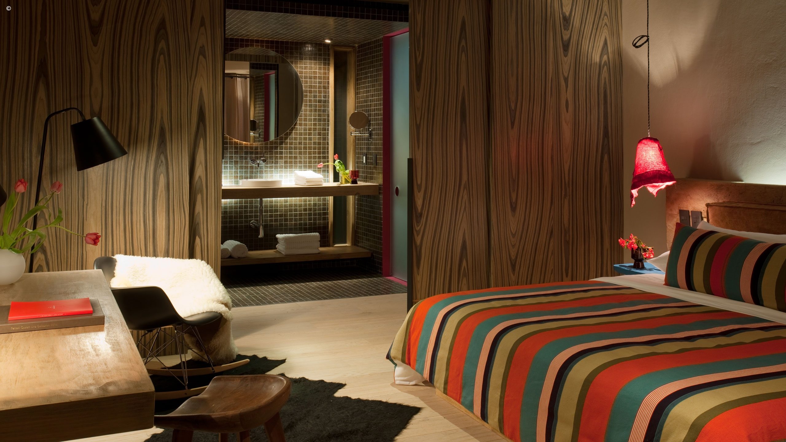 The décor is design-led, minimal and vibrant, incorporating lots of light and natural materials. Its rooms are bright, spacious and contemporary with its sheep’s wool carpets made locally and many contrasting patterns being played out. Surrounded by gardens filled with nut trees and fountains, there’s a manicured tranquility to the hotel and at night, when the rooms and surround are all lit up, a stylish warmth also.