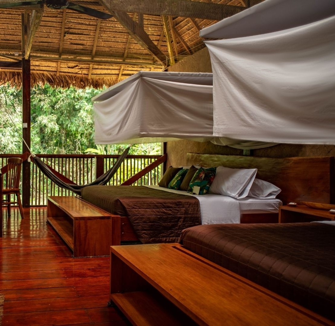 There are 30 rooms and suites here, each with its own en-suite, and traditional Peruvian dishes are served in the open-air restaurant. The lodge’s greatest feature, though, is its 42-metre-high observation tower with views well above the rainforest canopy, where you can watch birds soaring among the trees or spot monkeys swinging in the branches.