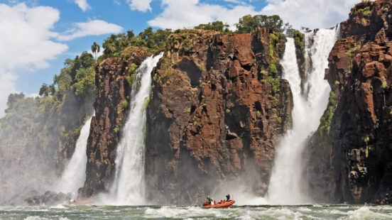 One of the most spectacular parts of the Falls is the Devil’s Throat, which sees the largest flow of water. To get to this hidden gem, travellers must board a train at either the Main Station or the Cataratas Station. Once at Devil’s Throat station, visitors catwalk across several islands to arrive at a rewarding lookout point. To get up close to the Iguassu Falls, travellers can head up river in a specially prepared boat. Whirlpools, waves and currents make this journey an enjoyable yet somewhat trepidatious one. Whichever angle you choose to see the falls from, getting up close to them is an unforgettable experience.
