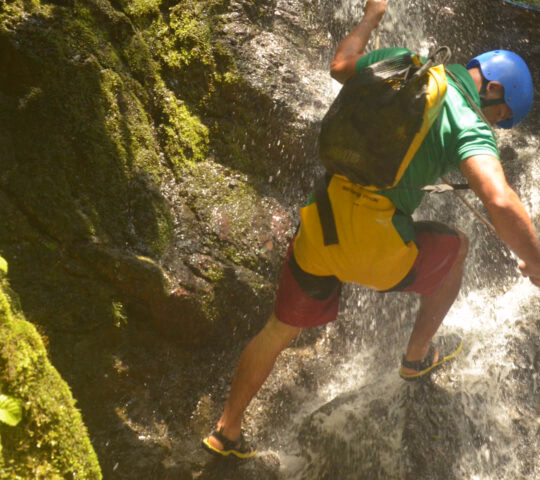 El Tesorito Creek flows out of the mountains behind the Pacuare Lodge into a narrow gorge in the midst of the rainforest. A fun outdoor adventure that includes rock climbing, a descent down a small waterfall, sliding along cables, swinging through the jungle like Tarzan, and rappelling down a 30-meter (100-foot) rock face. The result is a light but exhilarating adventure in an idyllic, natural setting. You’ll rappel down shorter walls – between 2 and 20 meters (6 to 65 feet) – before undertaking the thrilling rappel down a 30-meter (90-foot) cliff.