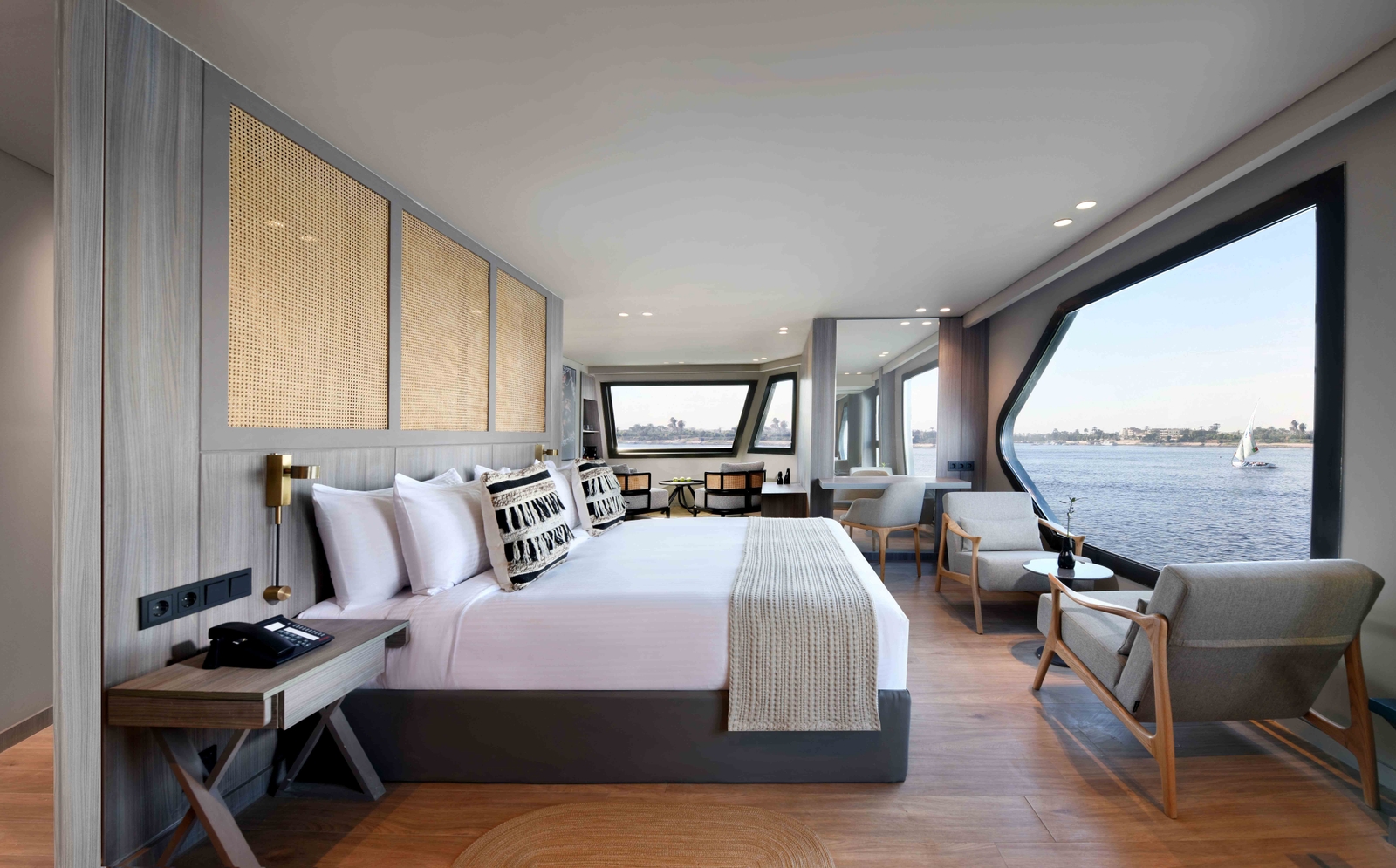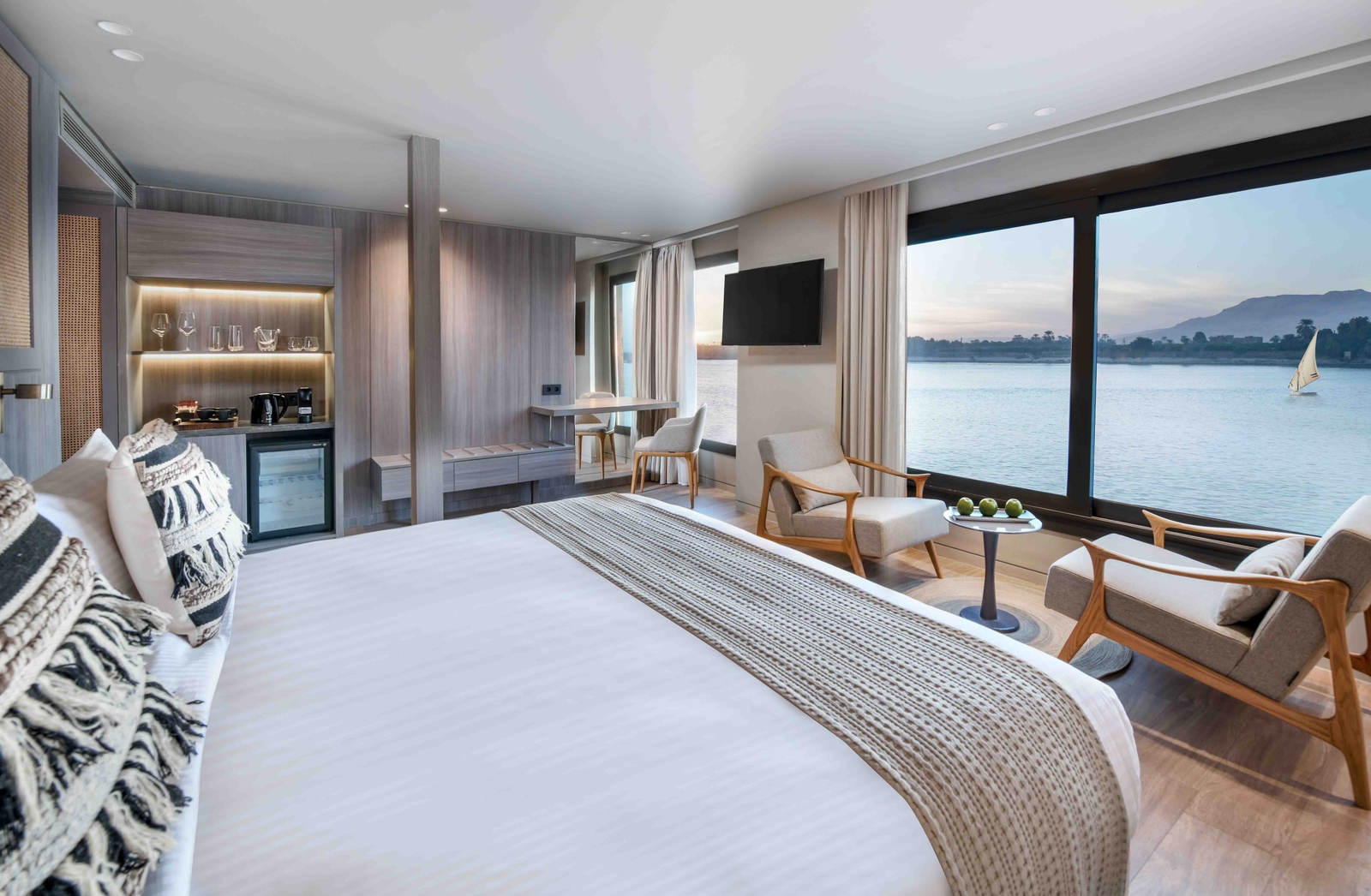Surrounded by ancient history beyond the banks of the Nile, allow yourself to relax on board the Historia where Egyptian-inspired furniture hints at the past and luxurious furnishings offer you a comfortable cruise experience. Think fluttering curtains, perforated rattan screens and a colour palette of earthy shades with jewel tone highlights.