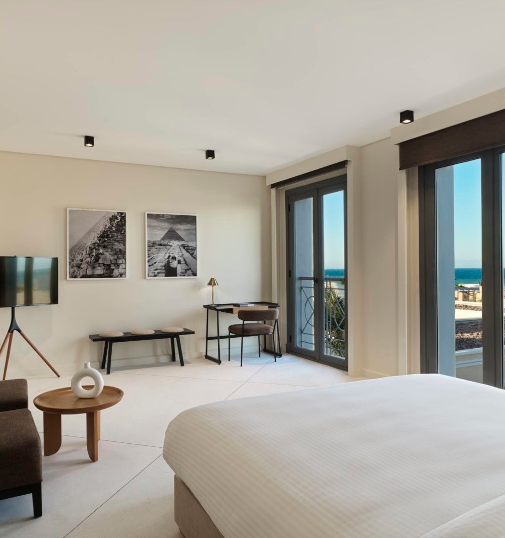 The Chedi El Gouna is a luxurious sustainable getaway nestled on the shores of the Red Sea, blending in seamlessly with the natural surroundings and architecture of the region. There are 82 rooms to choose from at the hotel, ranging from the Garden Room to the Superior Sea View Suite. All rooms feature a fusion of contemporary comforts and artisanal craftsmanship, along with terraces or balconies for you to enjoy your breakfast on.