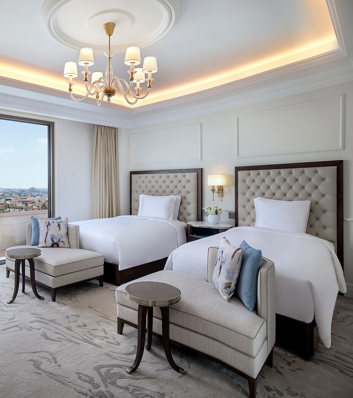 A striking figure in Amman‘s skyline, The Ritz Carlton Amman is nestled against the sprawling city, providing you with a spectacular view of Amman in its entirety. The hotel features 194 rooms and 34 suites, with the rooms being made up of the plush deluxe and premier deluxe rooms, along with the Club Level rooms where guests have access to the Ritz-Carlton Club Lounge. Suites include the Grand Skyline suite, which features a balcony for you to gaze down at the city from, and the spacious Kingdom suite. This suite also has a terrace along with four bathrooms, a fully-stocked kitchenette, and an airy yet luxurious atmosphere.