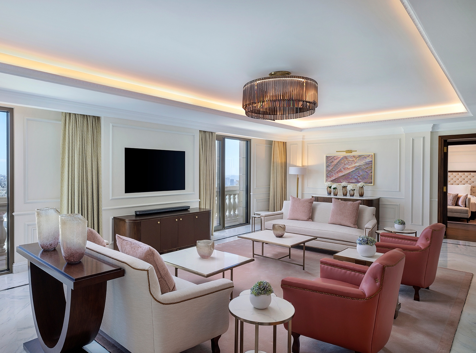 For dining, you’ll be spoilt for choice during your stay at the Ritz Carlton Amman. Savour Middle Eastern dishes and Arabic coffee at Sarab Garden, taste the freshness of the local produce at Ambros Bistro, or indulge on Italian cuisine at Roberto’s as you look out to the twinkling city lights from the 20th floor. For something more laid-back, head to the Pool Grill for a bite before or after your swim. There are also various cafes and bars, including Soleil Café, which is bejewelled with gorgeous floral decorations and offers its signature afternoon tea to break up your busy day, and the Founder’s Lounge, where stepping past the threshold is like stepping into the past. The speakeasy offers an impressive selection of cocktails for you to enjoy amid the glamour.