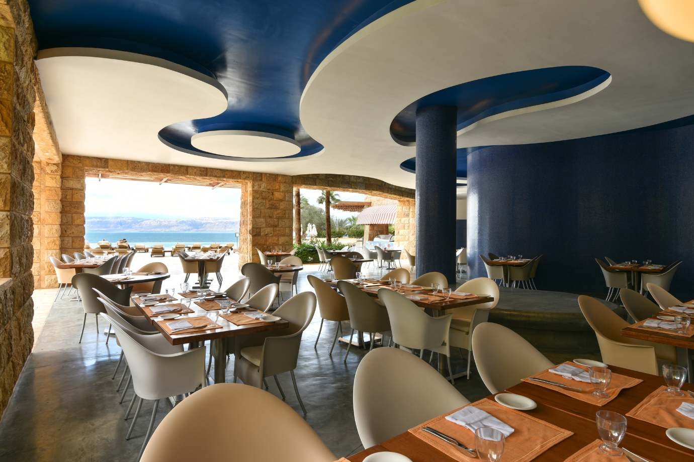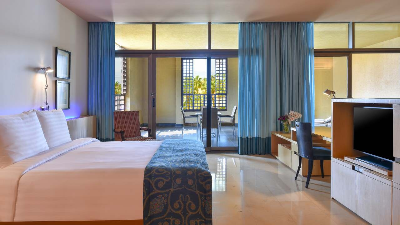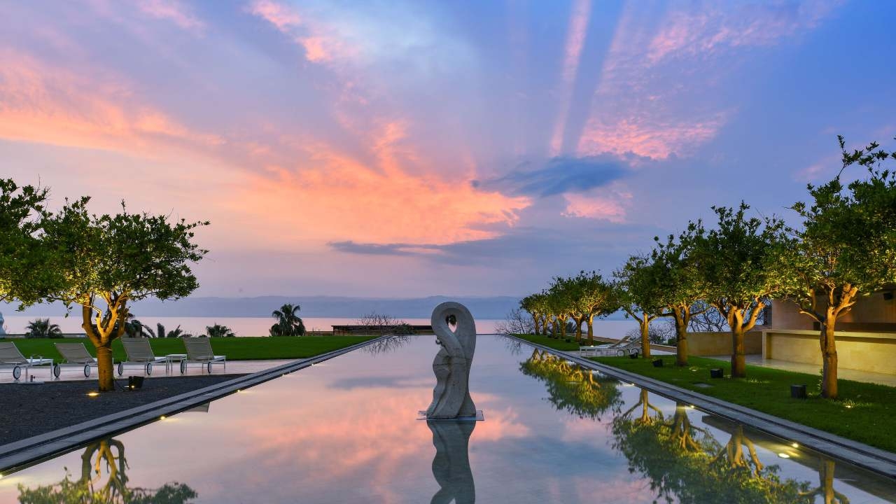 The Kempinski Ishtar Dead Sea is a truly luxurious hotel with incredible ‘sea’ views, beautiful gardens and a range of stunning outdoor social areas. The property’s decor is inspired by the Hanging Gardens of Babylon with natural terracotta colours contrasted against lush green foliage, ornate tiles inspired from traditional levant design and the azure blues of twinkling swimming pools and the calming sea beyond.