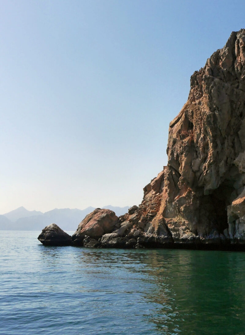 Rugged peaks push upwards out of azure waters creating steep-sided fjords, traditional dhows dotting the shallows around the coast, with abundant snorkelling opportunities. Cruising these stunning waters is one of the best ways to fully appreciate the beauty of this region. Keep an eye out for pods of frolicking dolphins along the way.