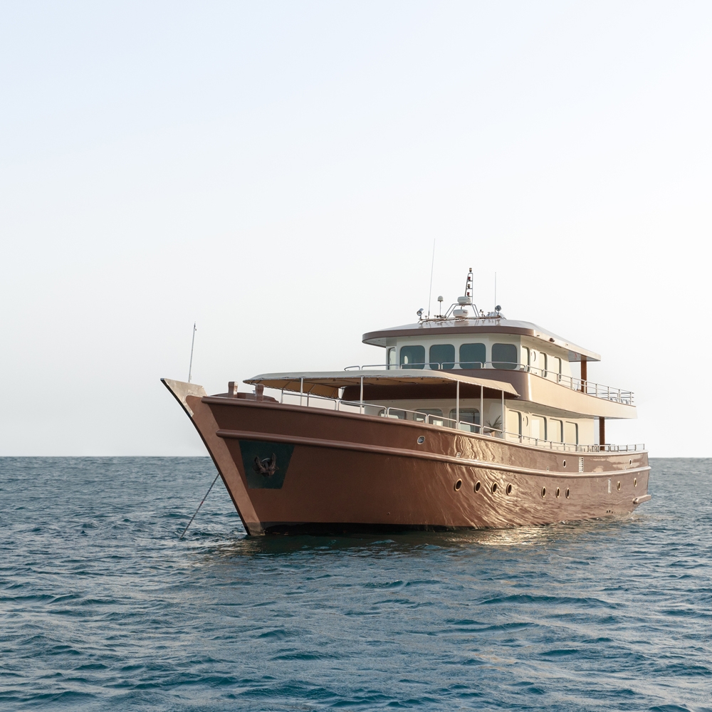 This modern dhow can accommodate up to 40 guests for day cruises, and for overnight charters it can sleep up to eight people in four guest cabins: two doubles and two twins. Each room boasts an en-suite. You’ll be well taken care of by your captain, host, chef and deckhand.