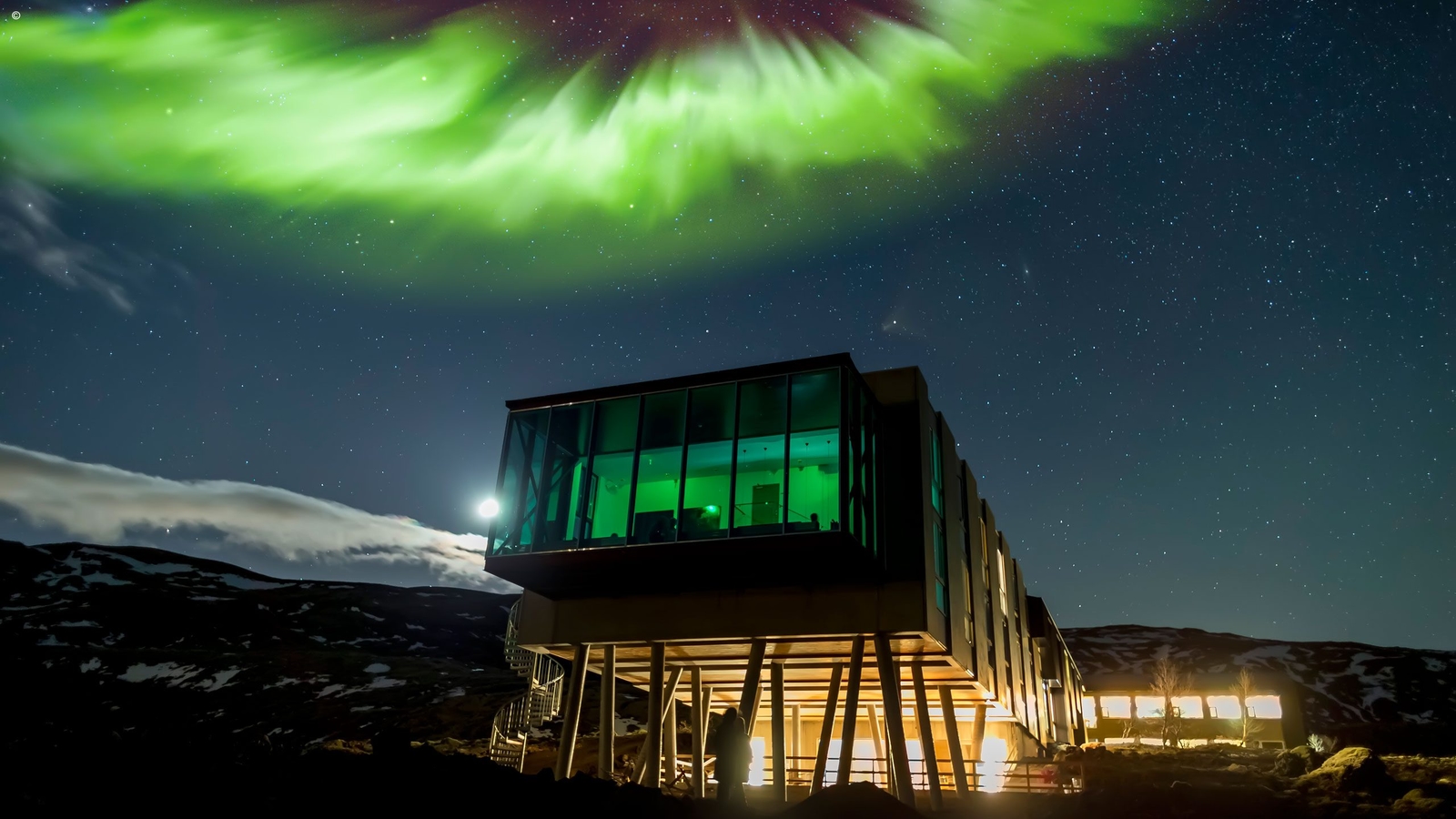 Everything is distinctly Icelandic from the wool throws to the artwork, to organic toiletries and eco-friendly cuisine. Watch the bewitching Northern Lights paint the sky as you dine on modern regional dishes, or from your room’s floor-to-ceiling windows, the softly-lit bar, or, for an utterly indulgent setting, the ten-metre outdoor hot tub.