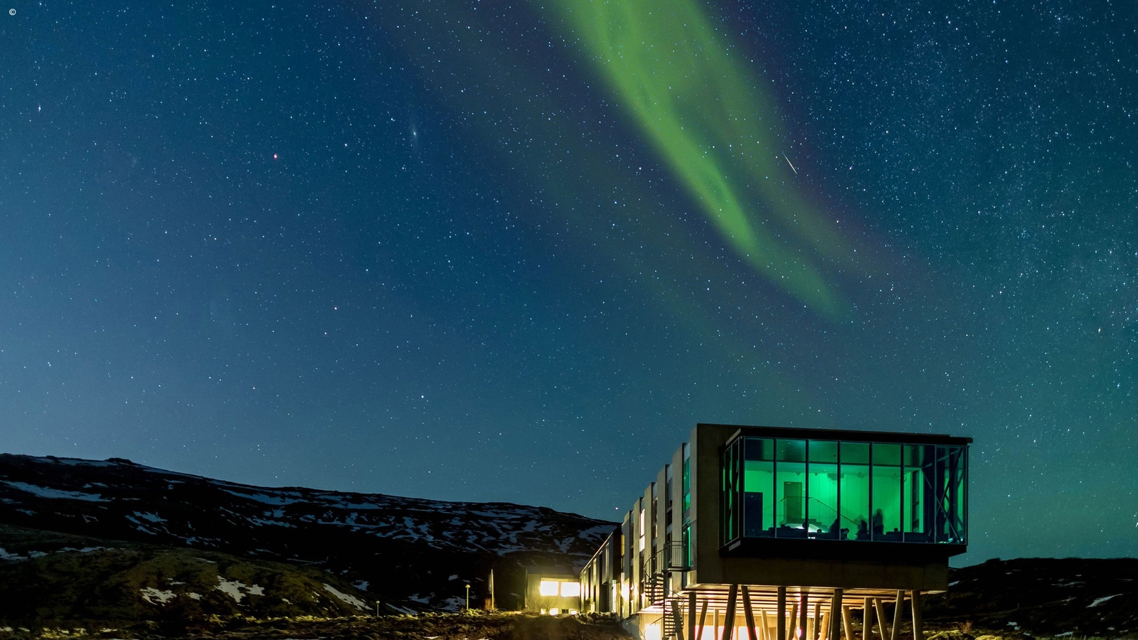 Everything is distinctly Icelandic from the wool throws to the artwork, to organic toiletries and eco-friendly cuisine. Watch the bewitching Northern Lights paint the sky as you dine on modern regional dishes, or from your room’s floor-to-ceiling windows, the softly-lit bar, or, for an utterly indulgent setting, the ten-metre outdoor hot tub.