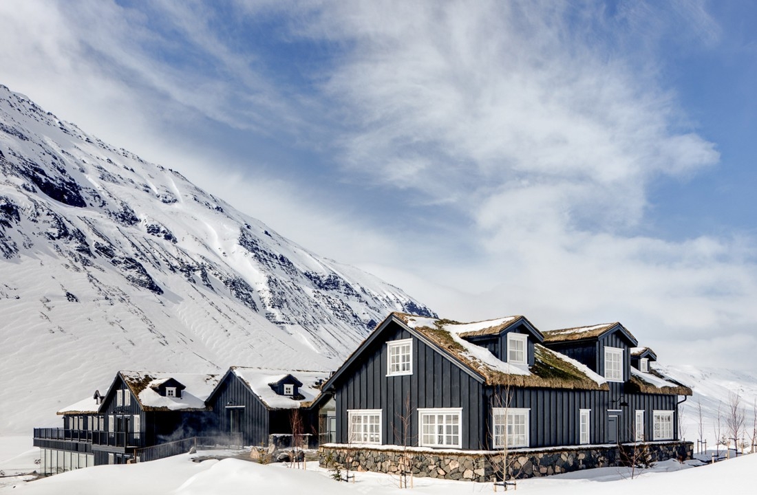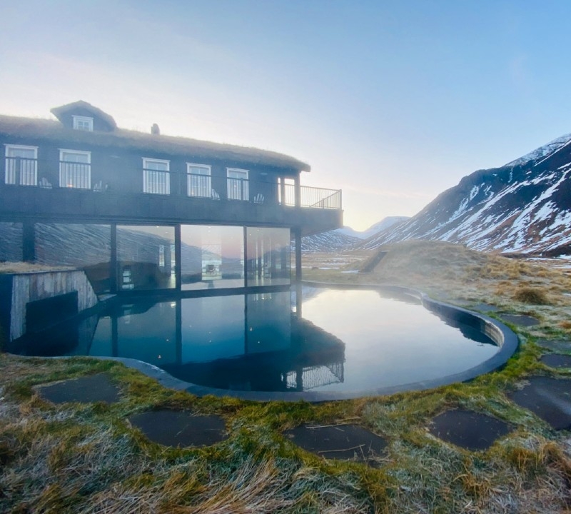 Once a working sheep farm, this sprawling property with its grass roof may look traditionally Icelandic on first glimpse, but its luxurious transformation into an opulent lodge soon becomes apparent.