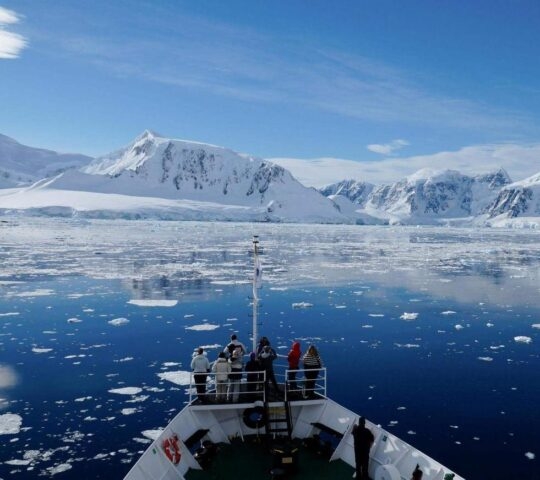 At the bottom of Andvord Bay there’s a corner of paradise at the foot of a huge glacier. Neko Bay is undoubtedly one of the most beautiful sites in the Antarctic Peninsula. Wildlife is also abundant here, with seabirds such as gulls, Cape petrels, cormorants, and marine mammals such as seals, orcas and whales. Your guides will take you aboard the Zodiacs to get closer to the icebergs or land nearby to the penguin colonies, to observe a sea leopard, lounging on the beach or watch swoop of the Antarctic terns.