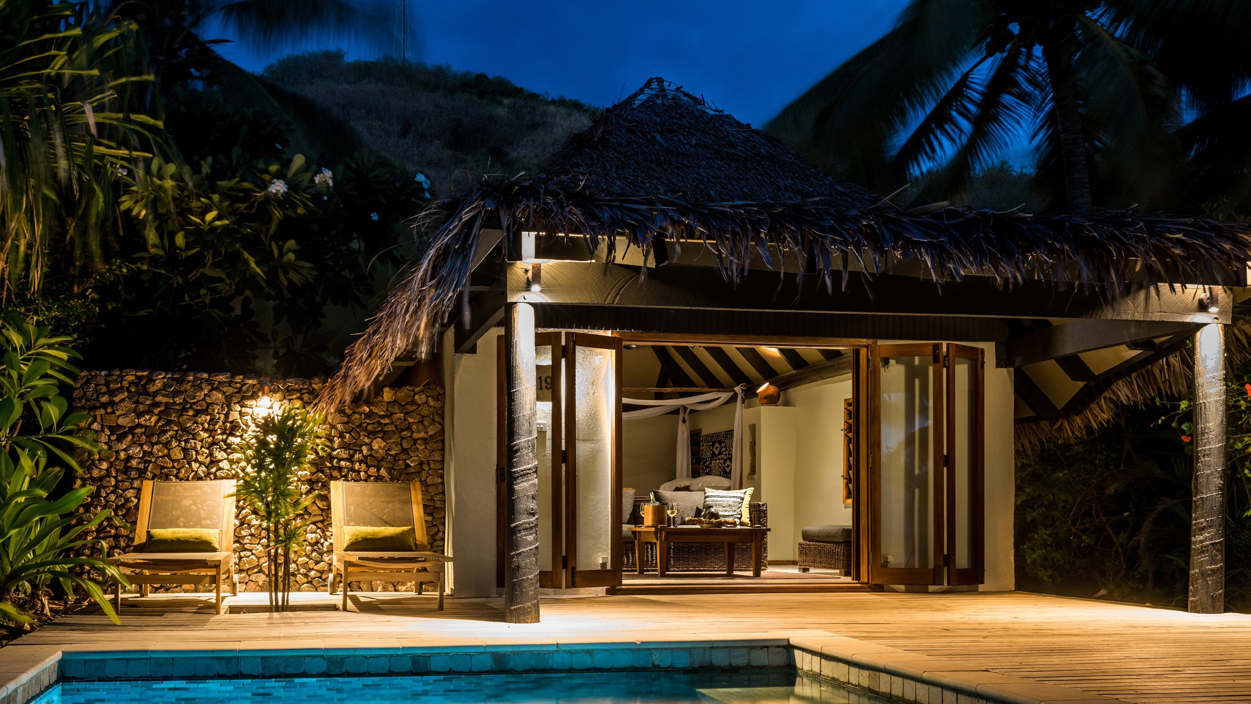 There are 36 beachfront bures – Fijian for a wood-and-straw hut, though these are far more opulent than that may suggest – 14 of which have their own pools, and 10 pool villas, with the Pacific Ocean just a few steps away. Each enjoys a tropical outdoor shower and are set amid lush palms, all facing west for fabulous sunset views.