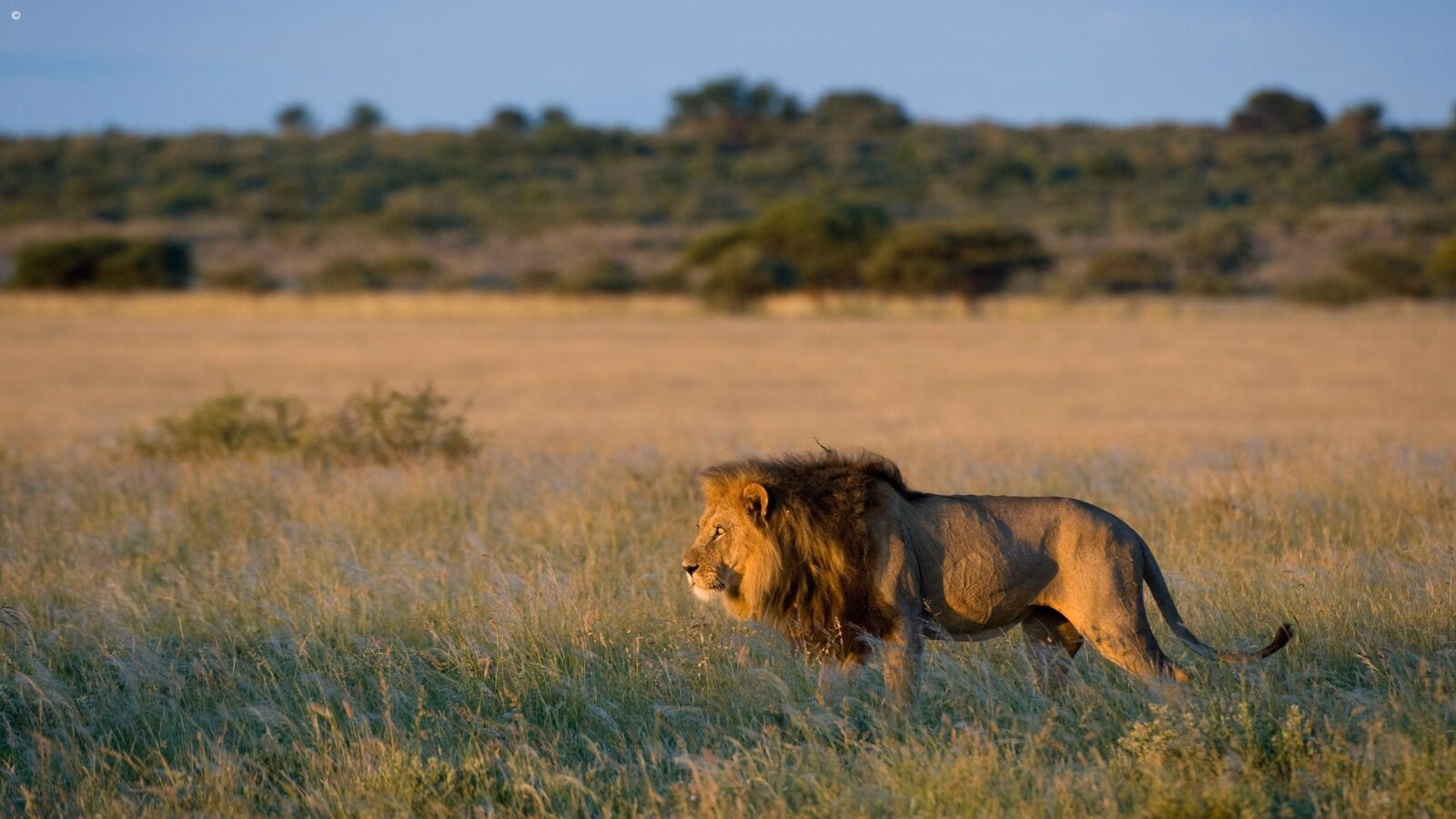 Follow the fossil river valleys and salt pans with wide grasslands, red sand and the chance of black-maned Kalahari lions cruising the open country