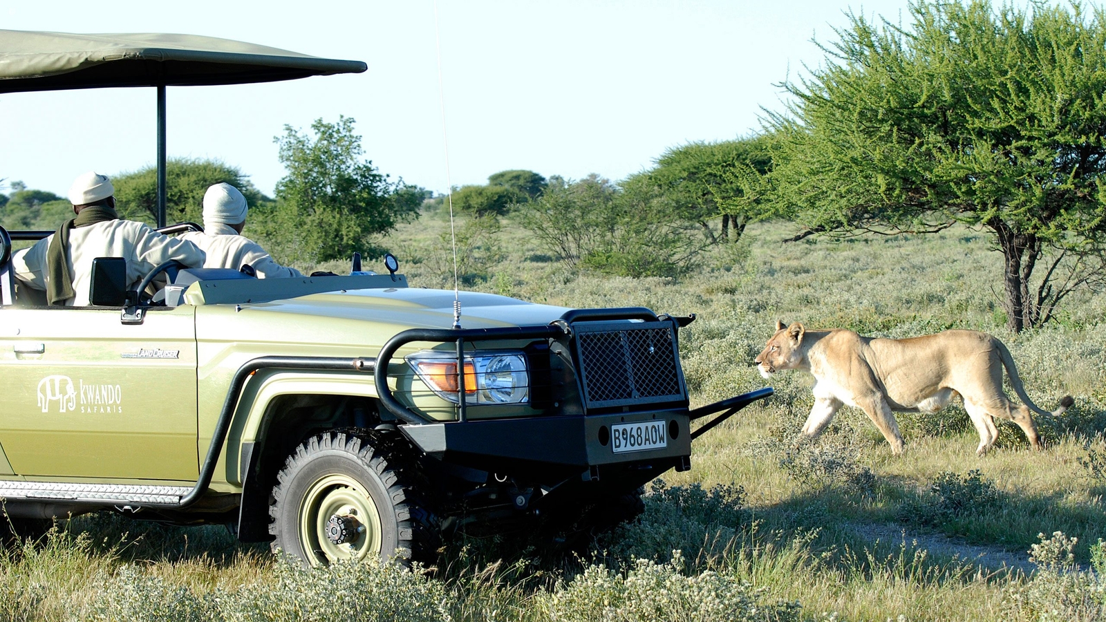 Your daily expeditions see you exploring Deception Valley, visiting Deception Pan and travelling to the Piper Pan area searching for other intriguing desert species. The property’s top-of-the-range Toyota Landcruisers are extremely comfortable with multiple details that make them perfect for game viewing… roof-top seats, leather bean bags for photography and ponchos to keep one warm on sunrise game drives. Deception Valley hosts huge herds of gemsbok, springbok, wildebeest and hartebeest attracted to the area by the flush of sweet grasses that flourish in the ancient valley following the rains. There is also a good chance of seeing the Kalahari lion, cheetah, brown hyena and meerkats.