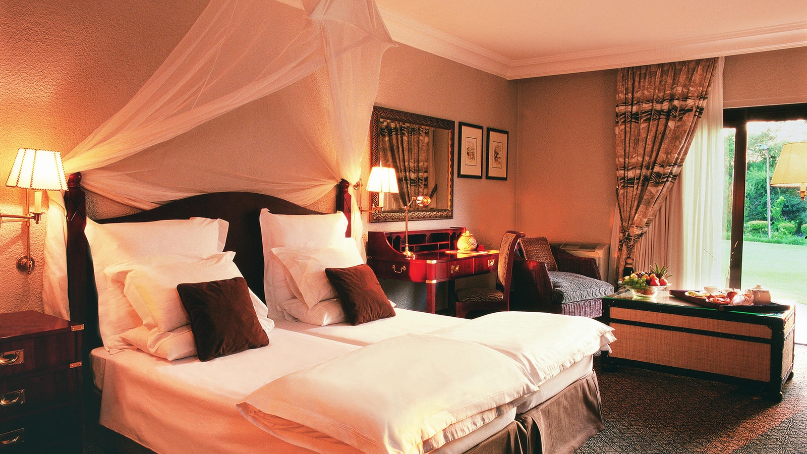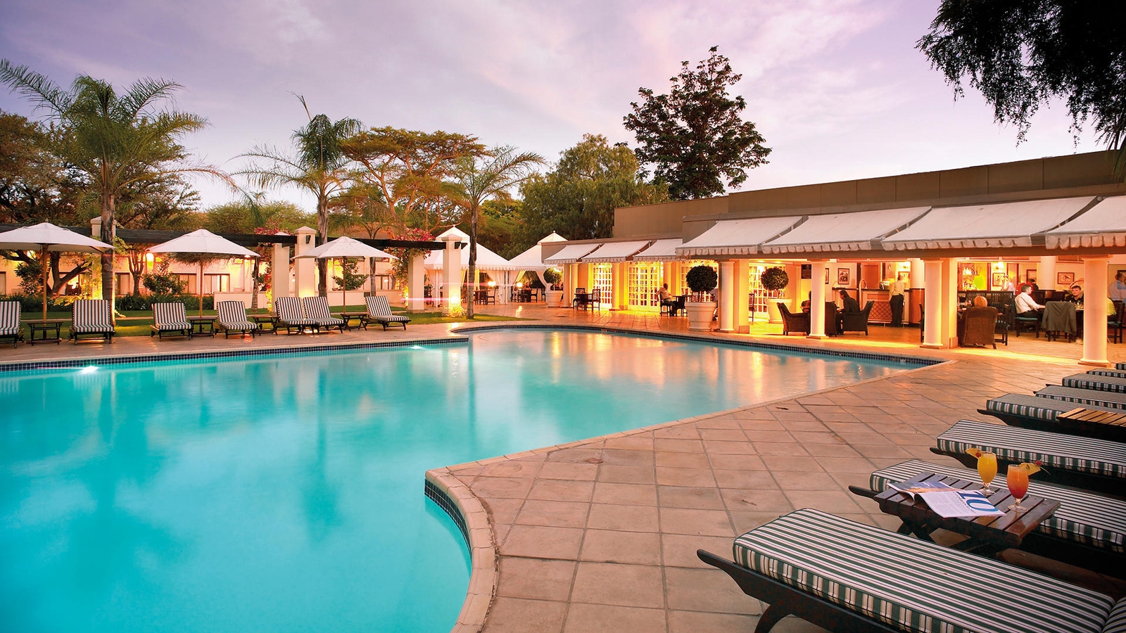 There are 196 comfortable, air-conditioned rooms and suites and the modern hotel also has a casino, outdoor swimming pool, tennis and squash courts. There are a selection of dining option – the Mahogany’s restaurant serves an à la carte menu and the Savuti Grill buffet-style restaurant features delicious carvery – plus 24 hour in-room dinning and several bars.