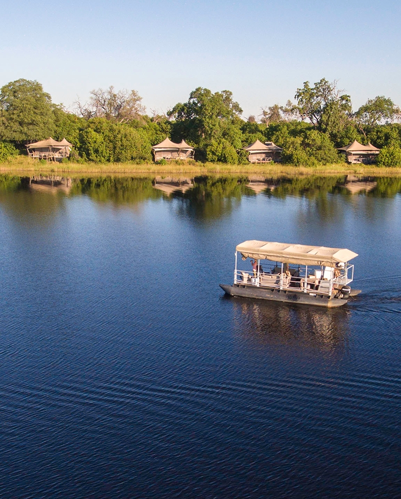 With uninterrupted views over Osprey Lagoon, and a fantastic vantage point from which to watch the areas mega-herds of elephants, Wilderness DumaTau and nearby Wilderness Little DumaTau are perfectly located for making the most of your stay in the Linyanti Wildlife Reserve.