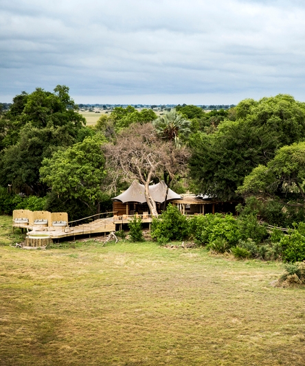 Rebuilt in 2018, the camp is made up of nine spacious and elegantly appointed tents, each built on a raised platform giving fantastic views across the plains. To reduce the environmental impact, most of the original material was used in the rebuild. Set in a thicket of giant mangosteen and fig trees, the eight suites boast sweeping views out over the floodplain which attracts a large number of animals. Each suite has a sitting room, bedroom, bathroom, indoor and outdoor shower, plunge pool and wrap-around veranda. Enjoy watching the passing wildlife and panoramic sunsets from your ‘sala’.