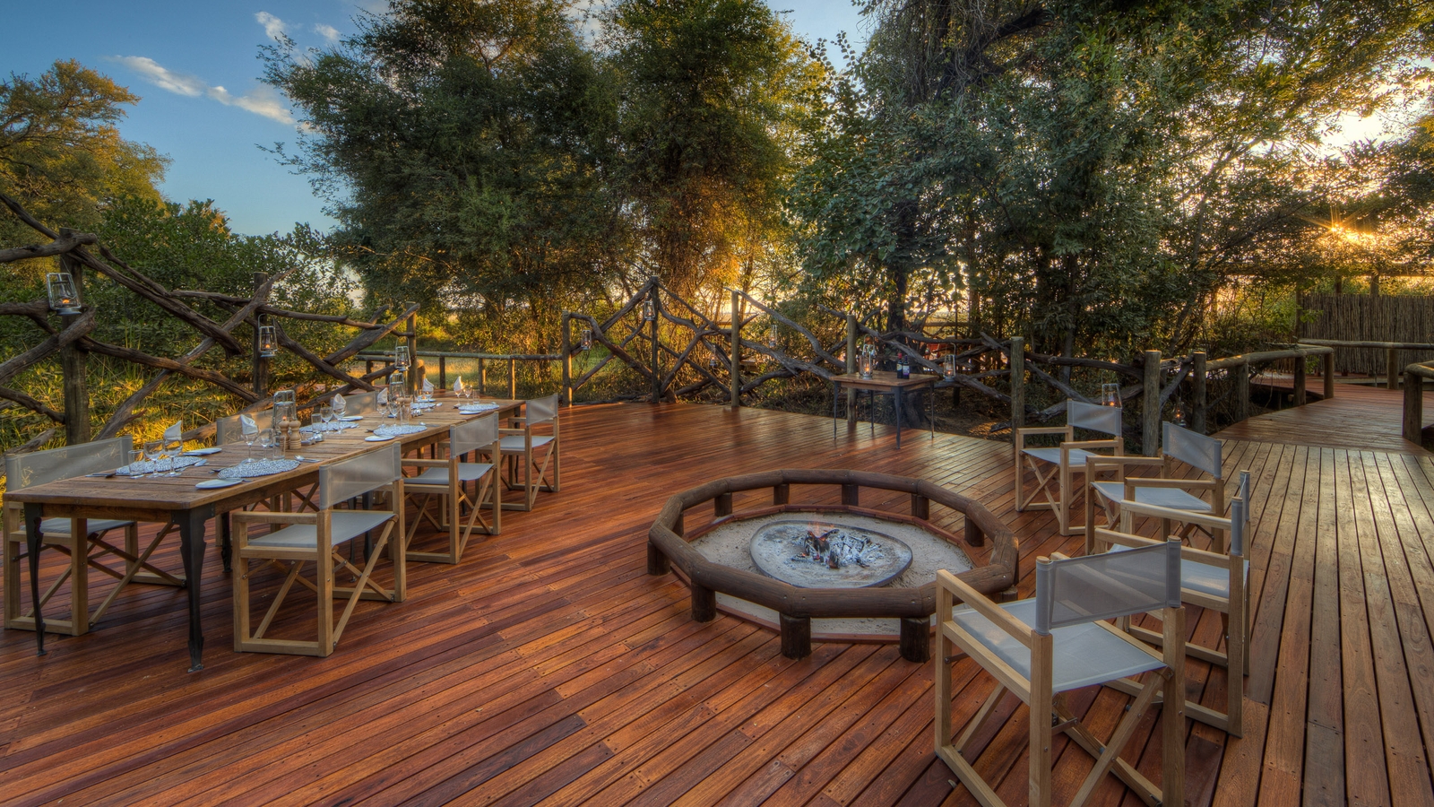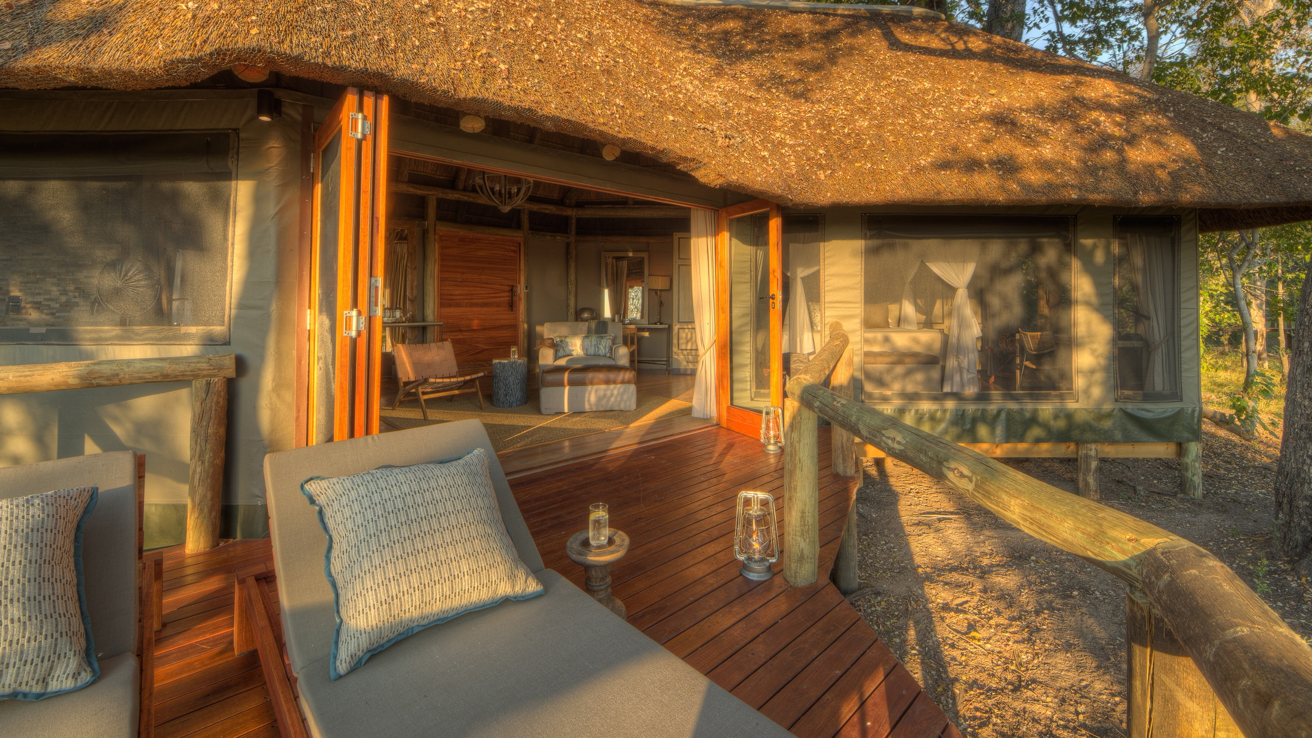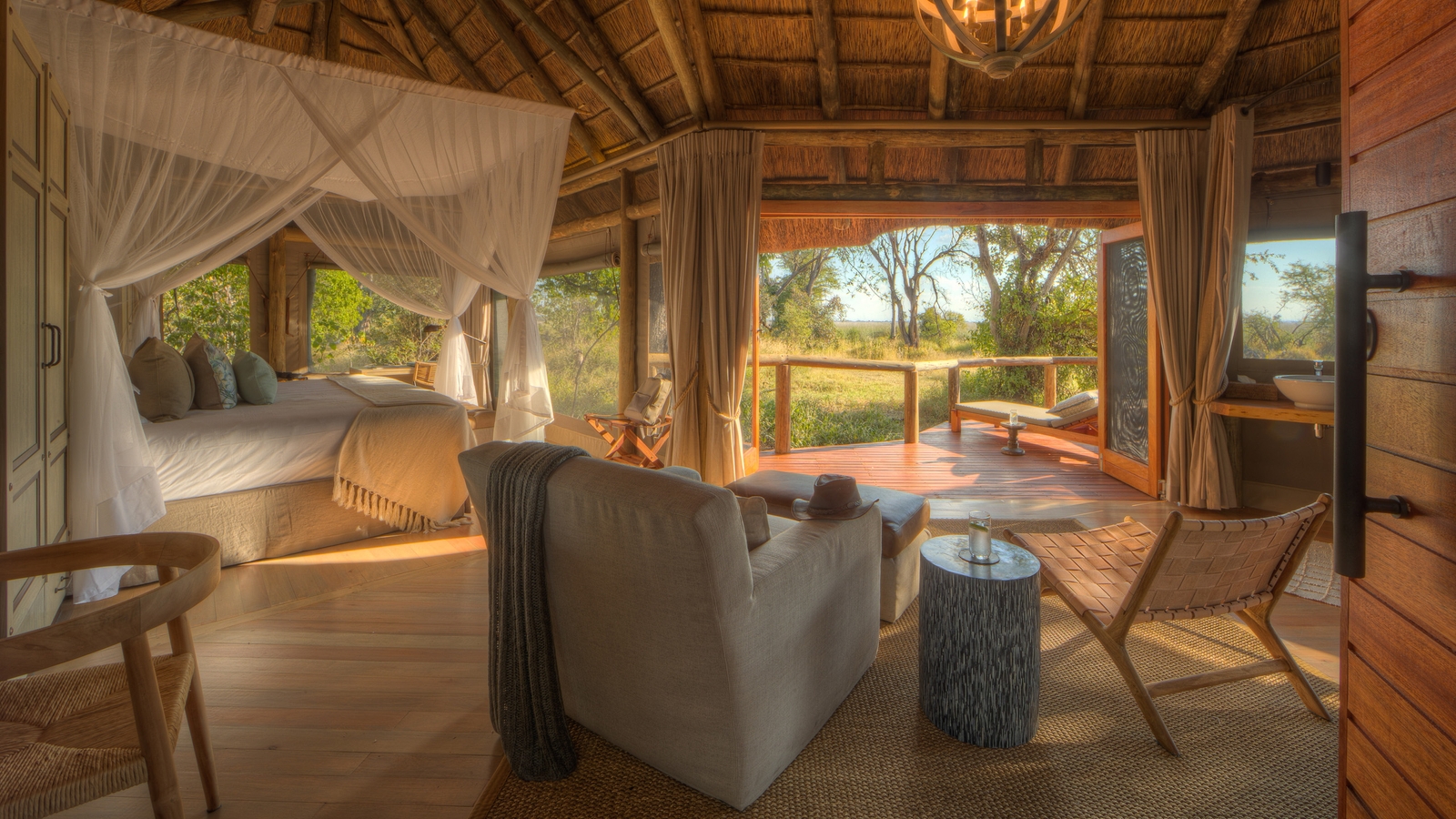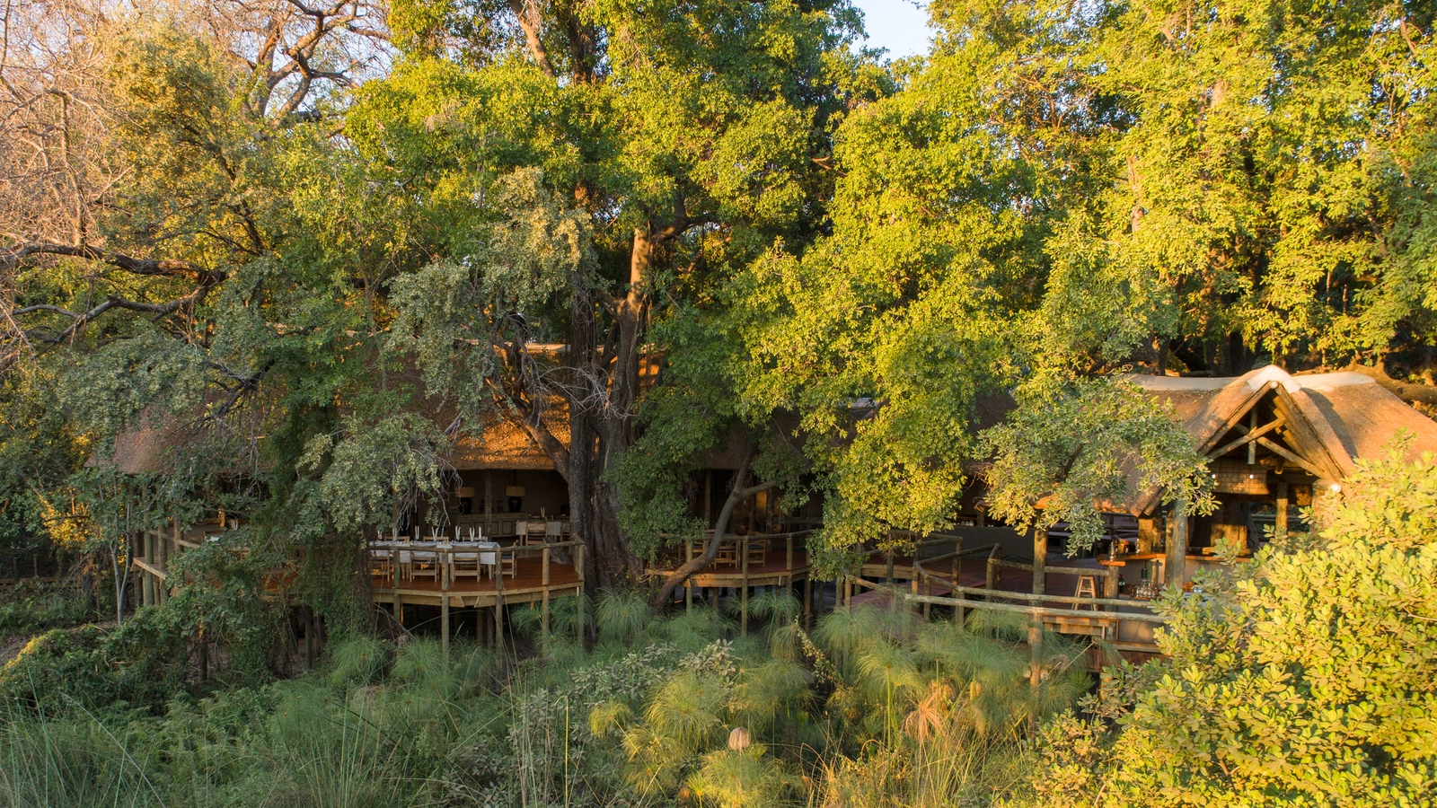 The camp has recently been completely rebuilt and consists of 12 large thatched safari tents, including one family room which includes two separate bedrooms and bathrooms and connects through interleading doors. The bathrooms feature double vanities and showers, and from the private deck, guests can enjoy views over the Moremi Game Reserve. Natural decor and soft lighting lends a warm atmosphere to the tents and they blend harmonious with the surrounding environment.