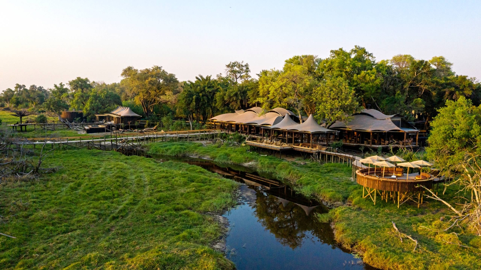 Set within the swishing grasses and leafy jungle of the Okavango Delta, Little Vumbura is classic Botswana at its best. Expect to see elephants roaming on the outskirts of the camp, snacking on the fruits that drop from nearby mangosteen trees, and bring your binoculars to spot myriad birds flitting about the channel.