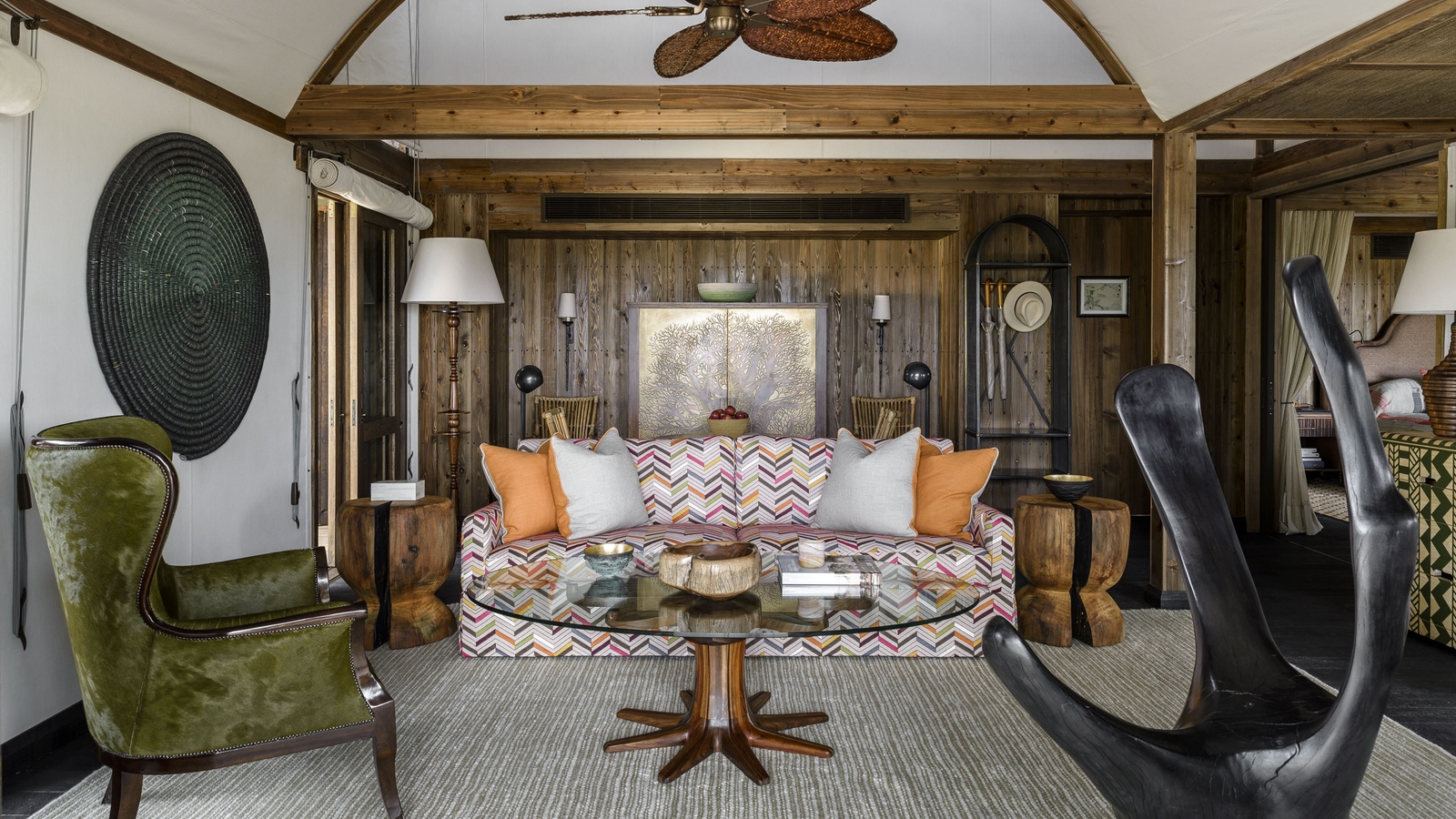 Each spacious tented guest suite has been positioned to offer great views whether you’re relaxing on your deck, or cooling off in your plunge pool. You’ll also find the tents include spot-cooling, meaning you can find respite from the hot afternoons indoors. Spend time investigating the ‘curiosity boxes’ you’ll find mounted on the walls in your room and the drawers filled with fascinating artefacts and information. They’re a great way to learn more about the area’s wildlife and rich history. Look out for unique elephant and wild dog art in the rooms and library made from reclaimed snare wire.