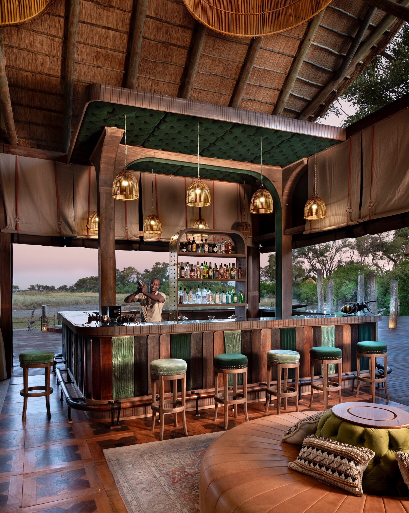 Atzaro Okavango is an exclusive safari haven nestled in the heart of the Okavango Delta in Botswana. Accessible by helicopter, the remote location offers a sanctuary far from the bustle of everyday life. Embraced by verdant palm islands and vibrant delta foliage, it offers an unparalleled blend of “savanna meets delta” adventures and unforgettable encounters with the region’s wildlife.