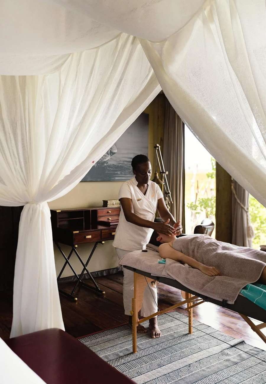Within the suite your lounge flows into a well-decorated bedroom and an open layout indoor bathroom that is adorned with a polished copper bath tub and fireplace. The main camp, made up of a generously-sized main lounge, library, dining area and bush boutique, is nestled under a canopy of trees a slight distance from the suites. An outdoor gym and in-room massages are also available.