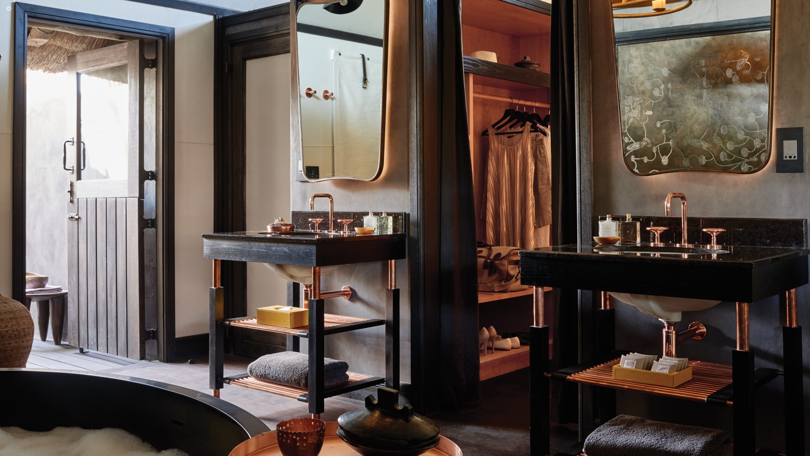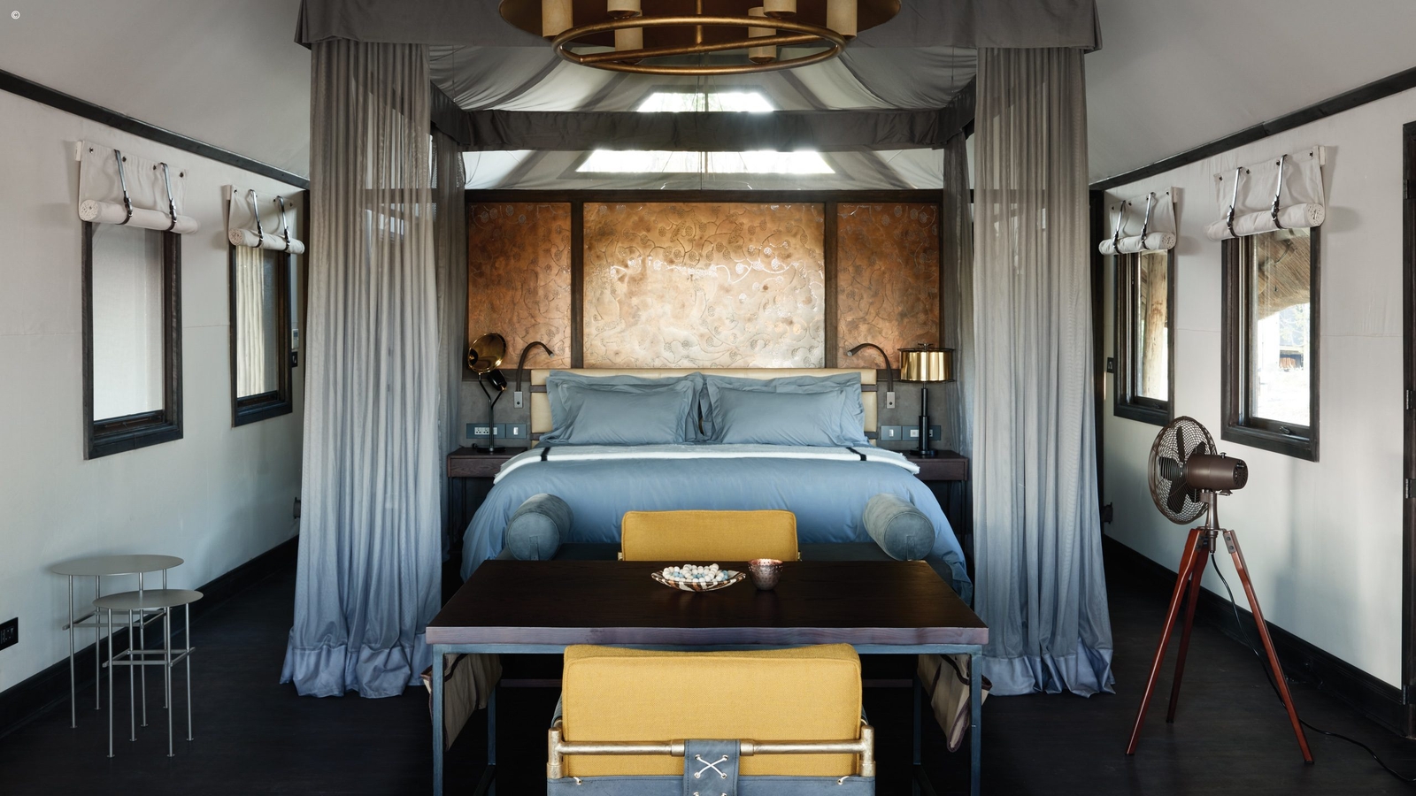 Each of the luxury air conditioned tents are housed on raised wooden platforms, offering great views, and shaded by a traditional African thatch roof. The large private decks are furnished with easy chairs and a hammock, ideal for viewing wildlife, or for enjoying a private dinner in complete privacy. The tent interiors are luxuriously appointed with such comforts as an en suite bathroom and a four poster bed complete with mosquito netting.