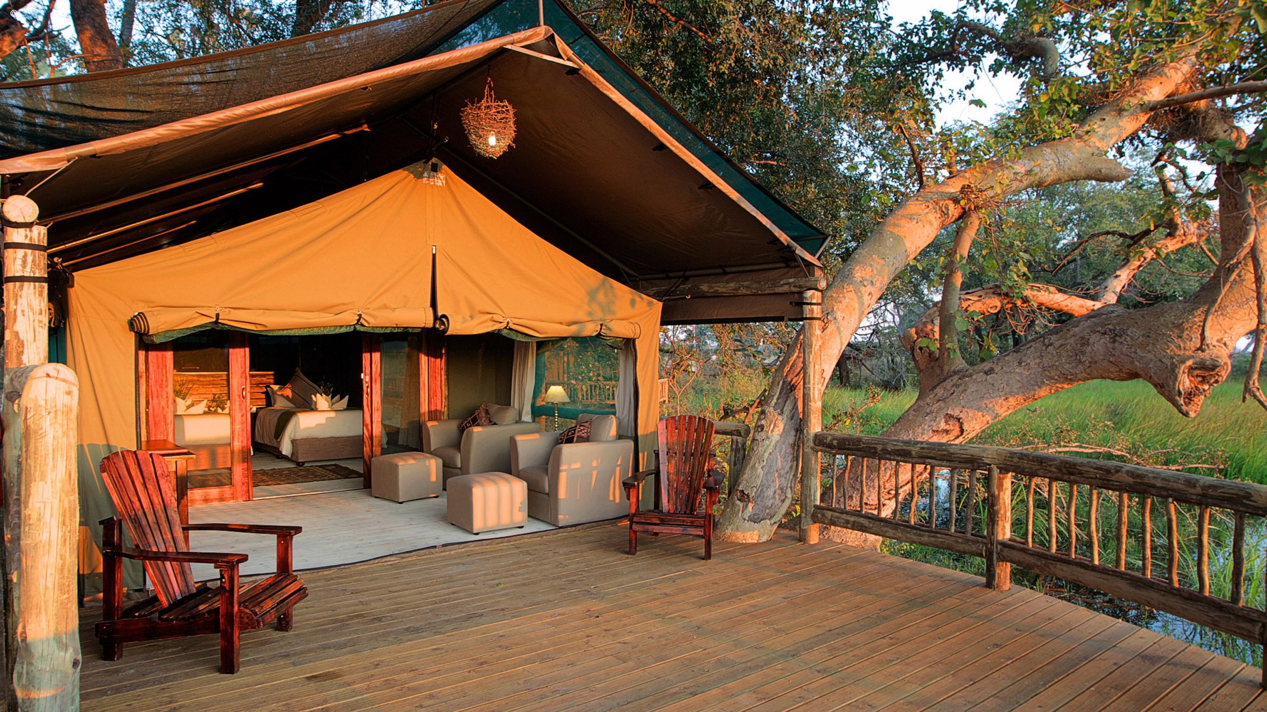 Overlooking the legendary Chiefs Island and close to the Moremi Game Reserve, Gunn’s Camp is one of the last few remaining luxury old school safari camps left in the Delta.