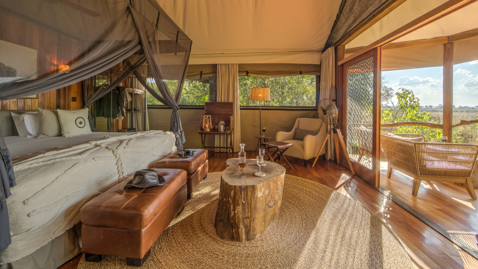 The camp consists of seven luxury tents and one family tent, all with en suite bathrooms. The spacious tents offer enough privacy while being just a short distance from the main camp where you’ll find a comfortable lounge area that looks out over the beautiful surroundings. There is also a sleep-out deck that offers guests the opportunity to spend a night under the star-studded African sky.