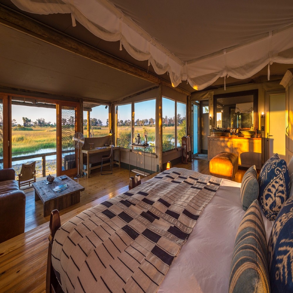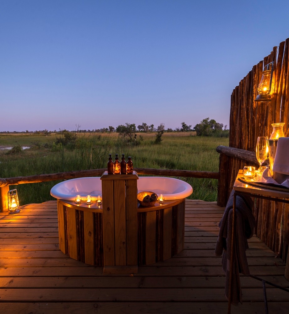 Each of the tented suites here offer a private hideaway within the wilderness, with views across the channels and plains beyond the camp, which often teem with wildlife. Animals aren’t the only thing worth watching out for here, though: spend evenings on the secluded star deck for spectacular sightings of stars and constellations in the night’s sky.