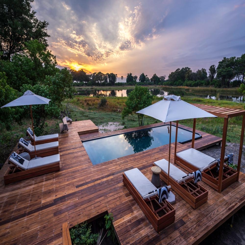Overlooking a tranquil lagoon, King’s Pool is a luxurious camp tucked away in a grove of jackalberry trees. The eight spacious canvas suites covered with thatched roofs are raised on wooden platforms to take in the views below. Families travelling together can enjoy the two bedroom family suite with sunken deck and private plunge pool.