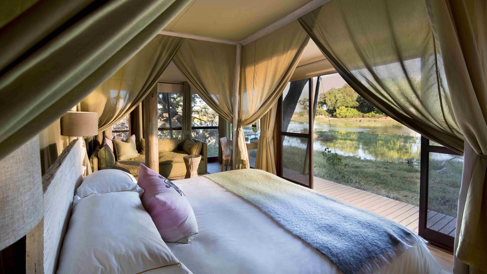 Xaranna has a uniquely contemporary style, uncommon in the delta with the use of clean whites and colourful textiles and fittings in its decoration. Set on an island in a private concession of 25,000 hectares There are 9 very spacious tents, each with their own private plunge pool.