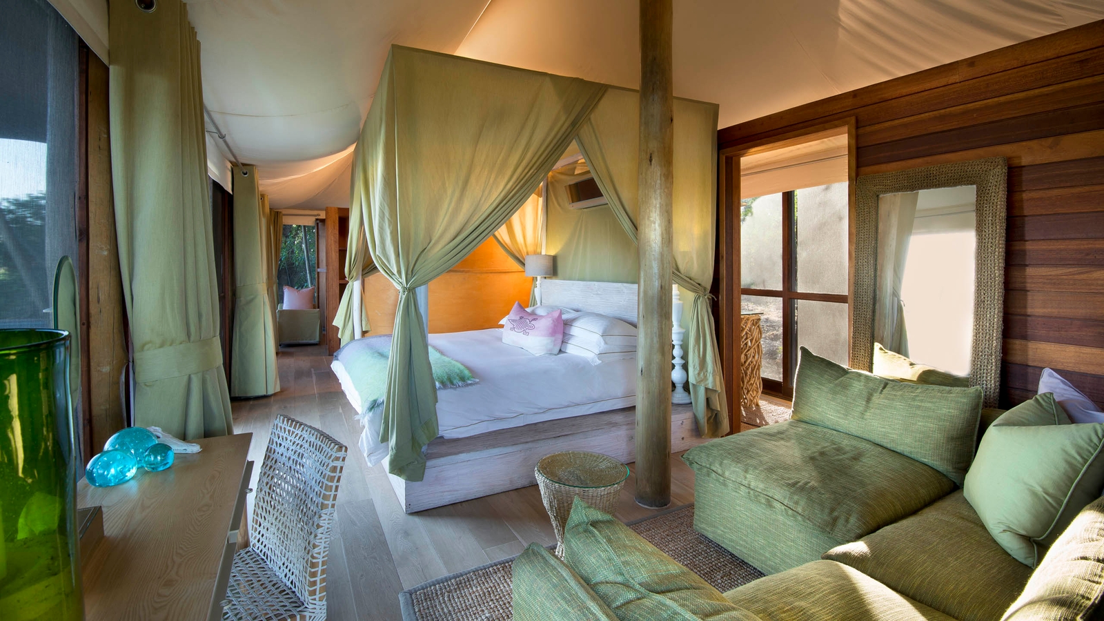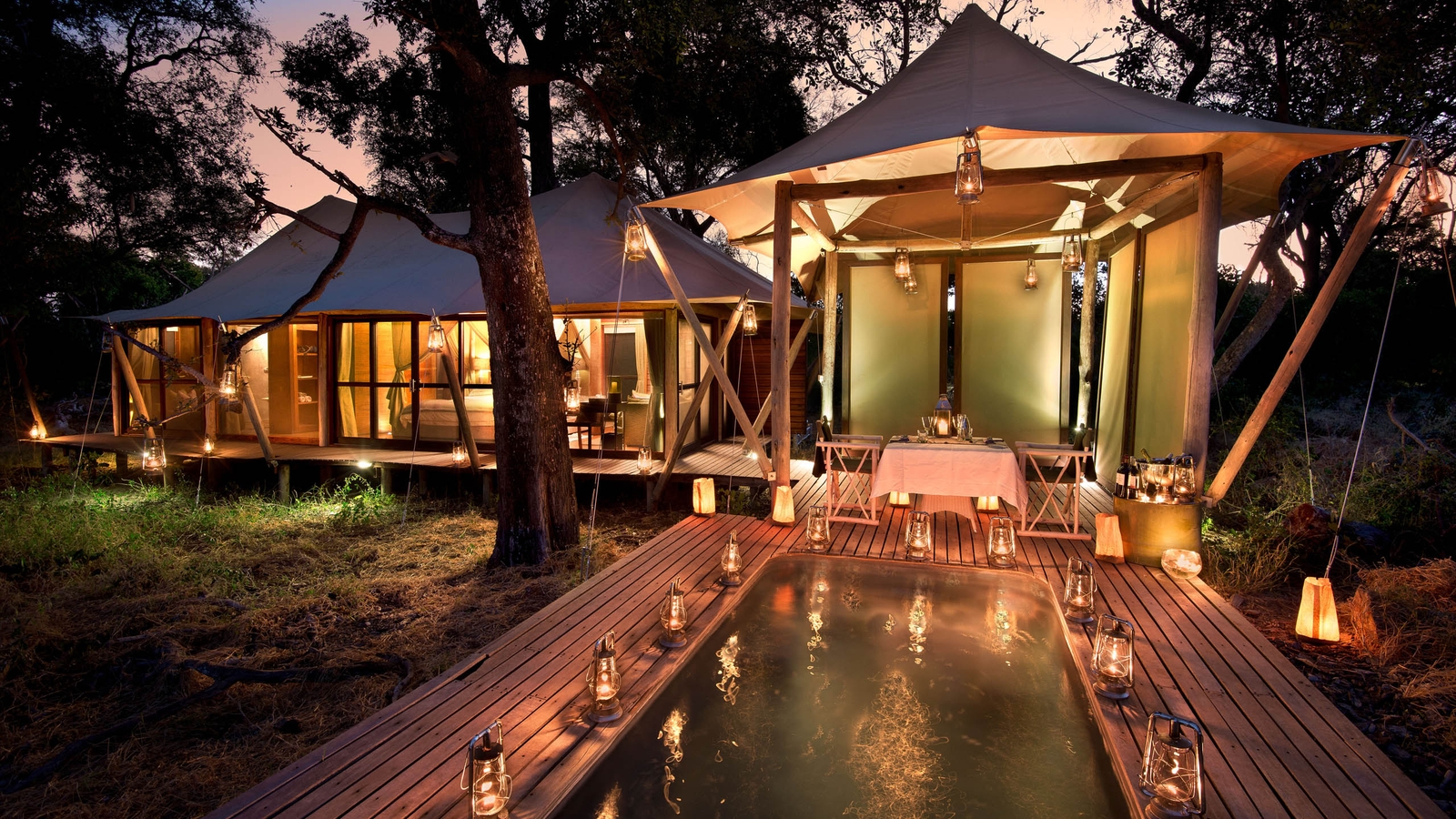 Xaranna has a uniquely contemporary style, uncommon in the delta with the use of clean whites and colourful textiles and fittings in its decoration. Set on an island in a private concession of 25,000 hectares There are 9 very spacious tents, each with their own private plunge pool.