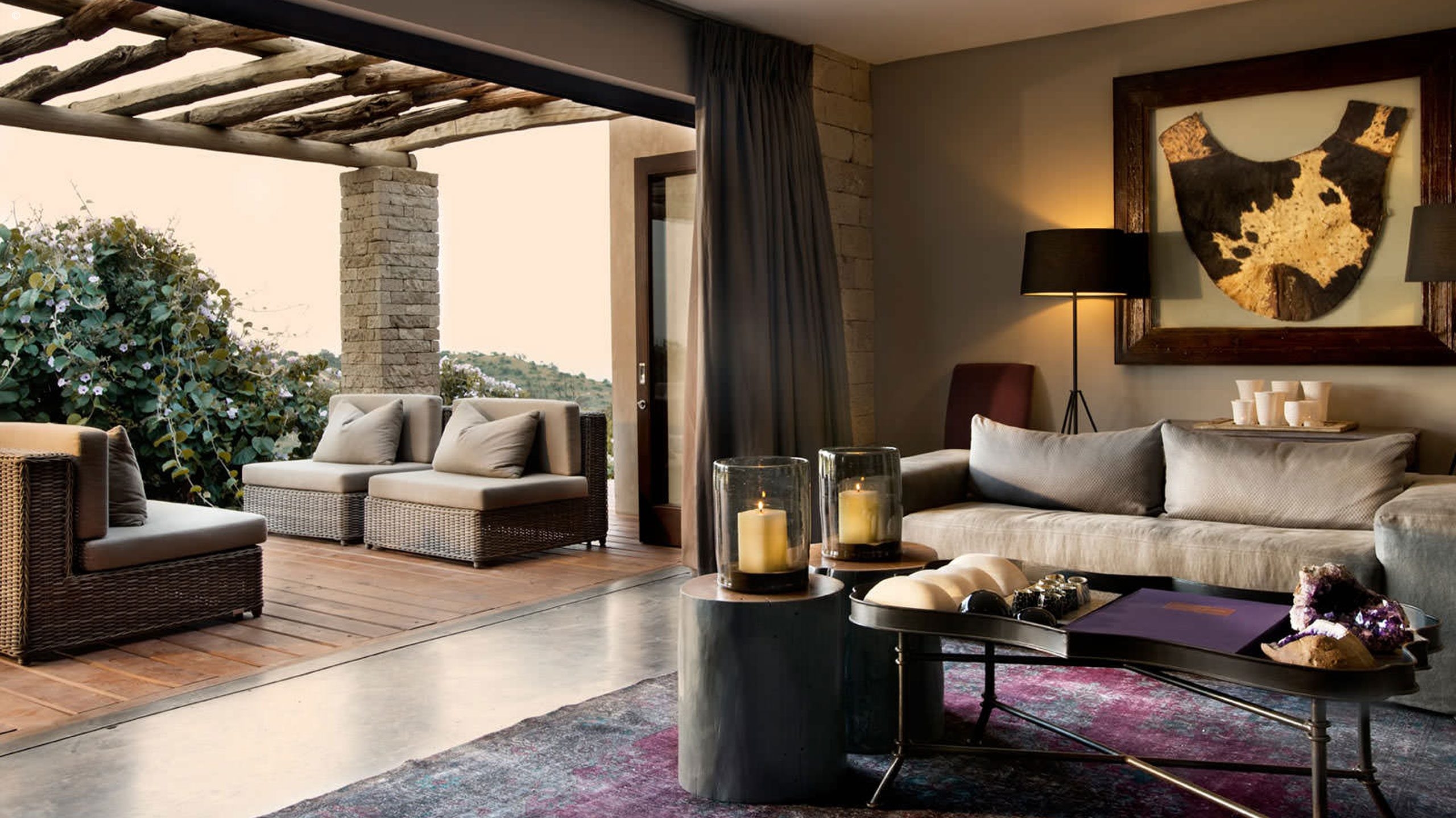 And then there are the suites. Six extravagant rooms feature African art and sitting rooms that lead onto gorgeous verandas. Though, the master suite is the house’s showstopper with its own study, dressing room, sitting area, private terrace, pool and huge, classical marble bath where you can watch the animals graze below.