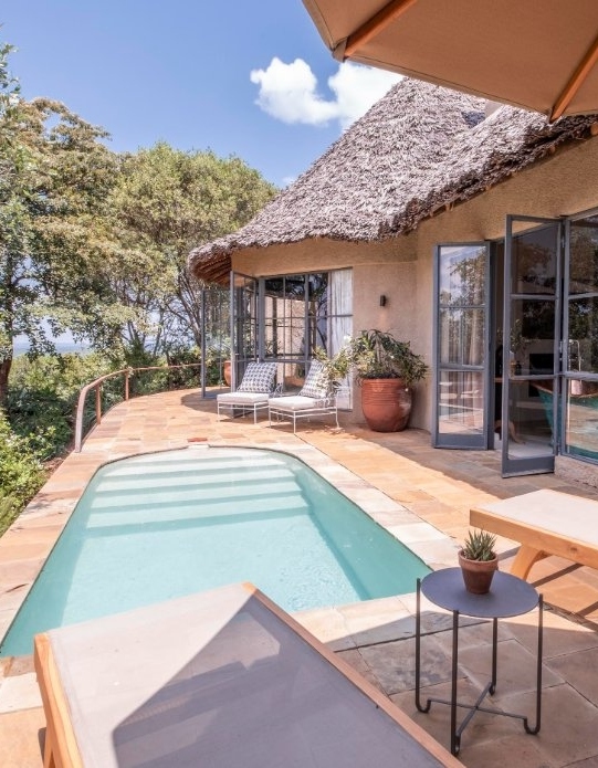 8 stone cottages give sweeping views over the Laikipia plains and to Mt Kenya