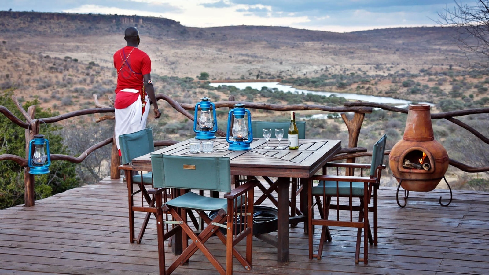 End your days with drinks by the log fire in the communal lounge, before dinner either in the dining area or out on the verandah. A stay here for a night or two twins perfectly with the nearby Loisaba Tented Camp.