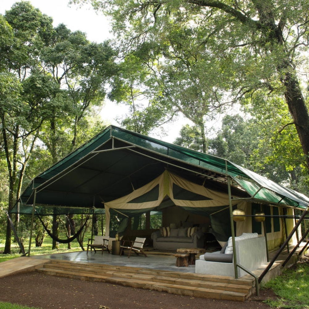 Ol Seki Hemingways is located in the heart of the Naboisho Conservancy which borders the world-famous Maasai Mara. The camp consists of nine luxurious tents scattered across the rocky escarpment, offering incredible views out over the Ngama Hills. Each stylish tent has been designed to offer secluded privacy and spacious accommodation. Neutral tones intermingle with the Bedouin style tents, whilst locally sourced fabrics and furniture, a large comfy bed, and a writing desk add further comfort. There are six domed Nina tents and two expansive family suites titled Simba and Chui.