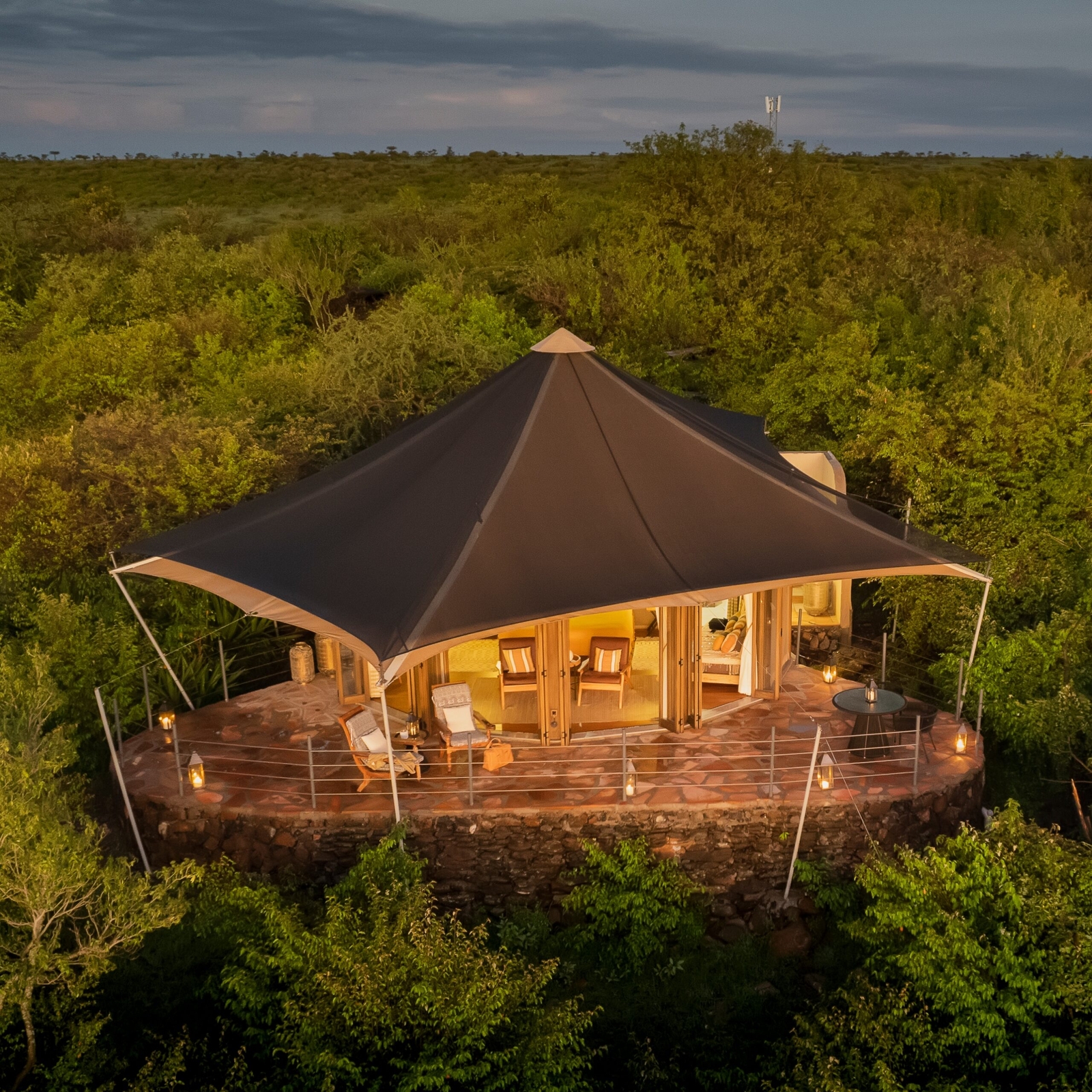 Ol Seki Hemingways is located in the heart of the Naboisho Conservancy which borders the world-famous Maasai Mara. The camp consists of nine luxurious tents scattered across the rocky escarpment, offering incredible views out over the Ngama Hills. Each stylish tent has been designed to offer secluded privacy and spacious accommodation. Neutral tones intermingle with the Bedouin style tents, whilst locally sourced fabrics and furniture, a large comfy bed, and a writing desk add further comfort. There are six domed Nina tents and two expansive family suites titled Simba and Chui.