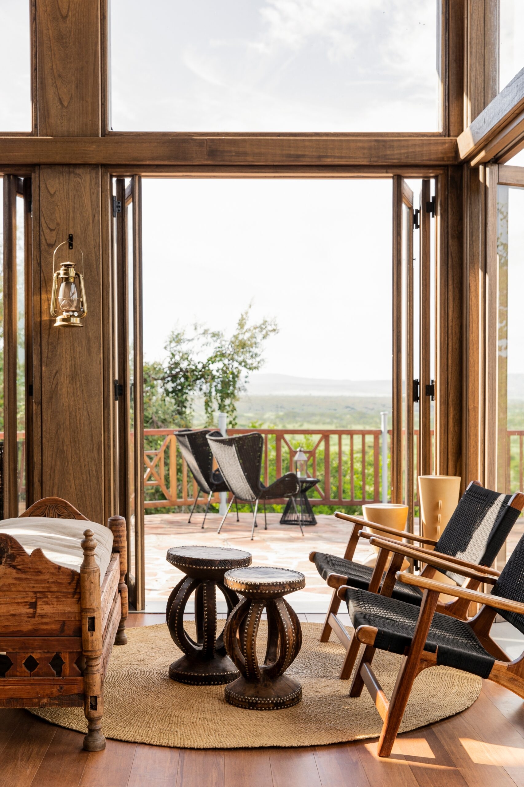 The Nina tents feature high domed ceilings and six opening panels on three sides, meaning you can enjoy the sunrise from the comfort of your double bed.. Out front you’ll find a large deck where you can relax, eat, drink, and stargaze.