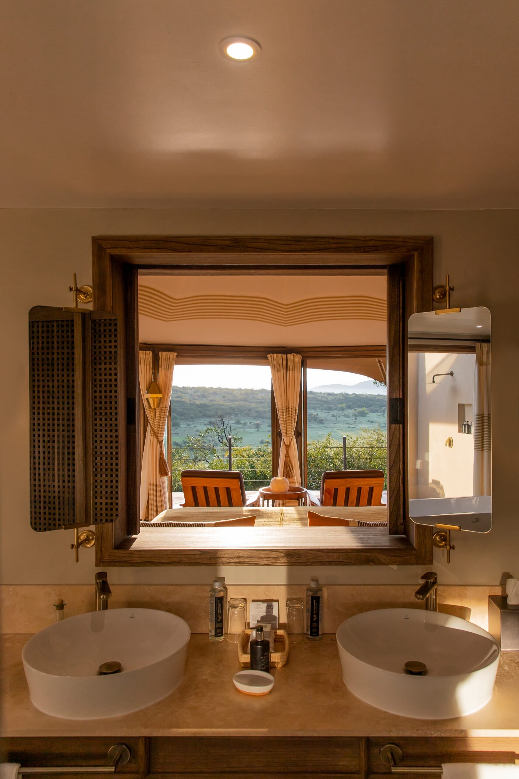 With a view of the acacia scrub behind your table, the dining area will reinvigorate your senses, whether you sit inside the modern establishment or on the outside terrace. Dining can be enjoyed in a multitude of ways: with a completely mobile kitchen, meals can be had on the grassy plain of the conservancy one evening, or eaten by lantern light as you gaze across the Ngama Hills the next. Private dining on the decks is also available.