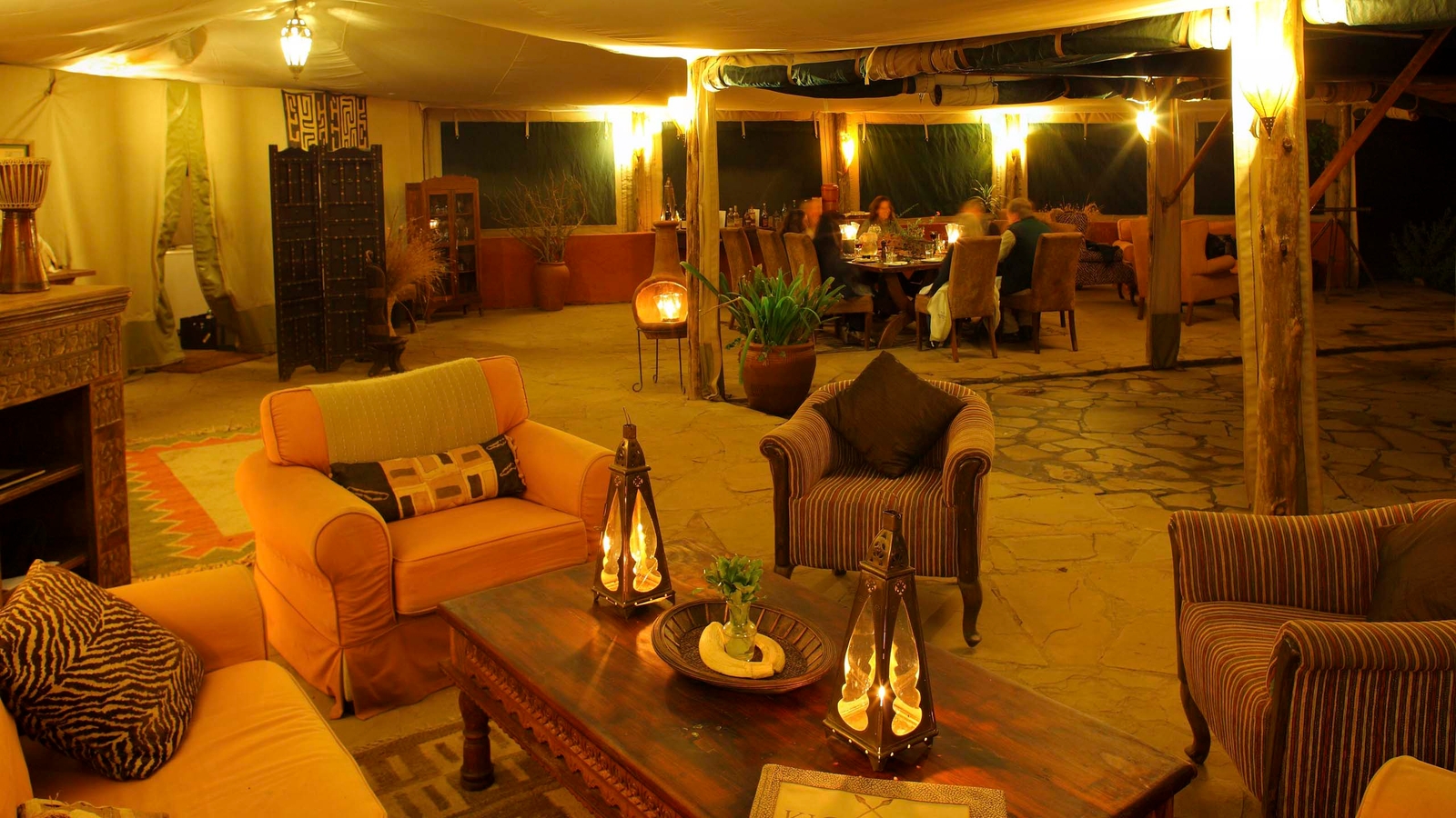 Lounge tent with dining area and library